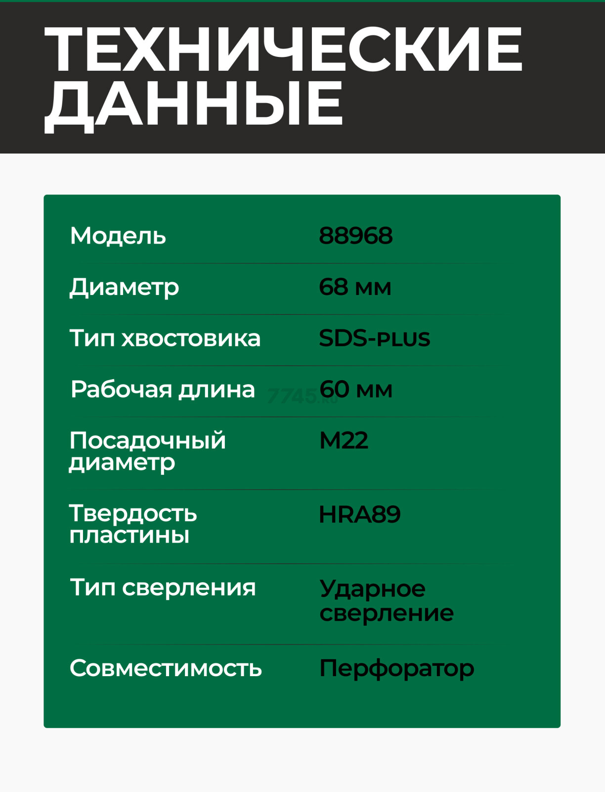 Описание товара Коронка по бетону твердосплавная 68 мм ВОЛАТ (88968)