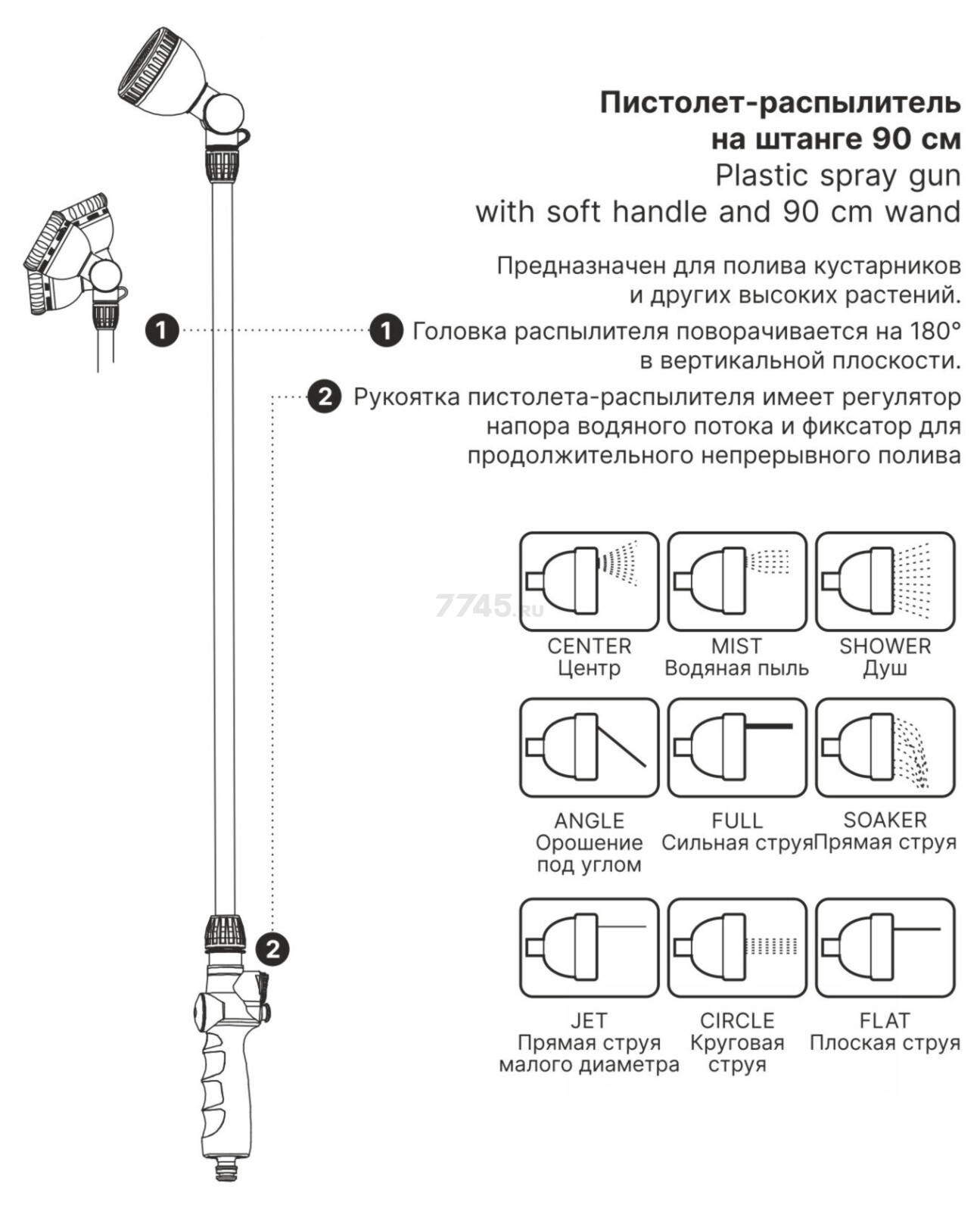 Информация о товаре Пистолет-распылитель 9-позиционный на штанге STARTUL GARDEN (ST6010-09)