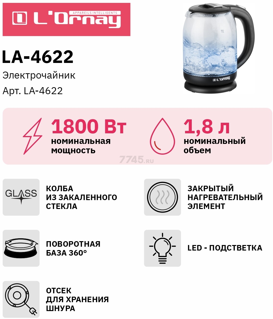Информация о товаре Электрочайник L'ORNAY LA-4622