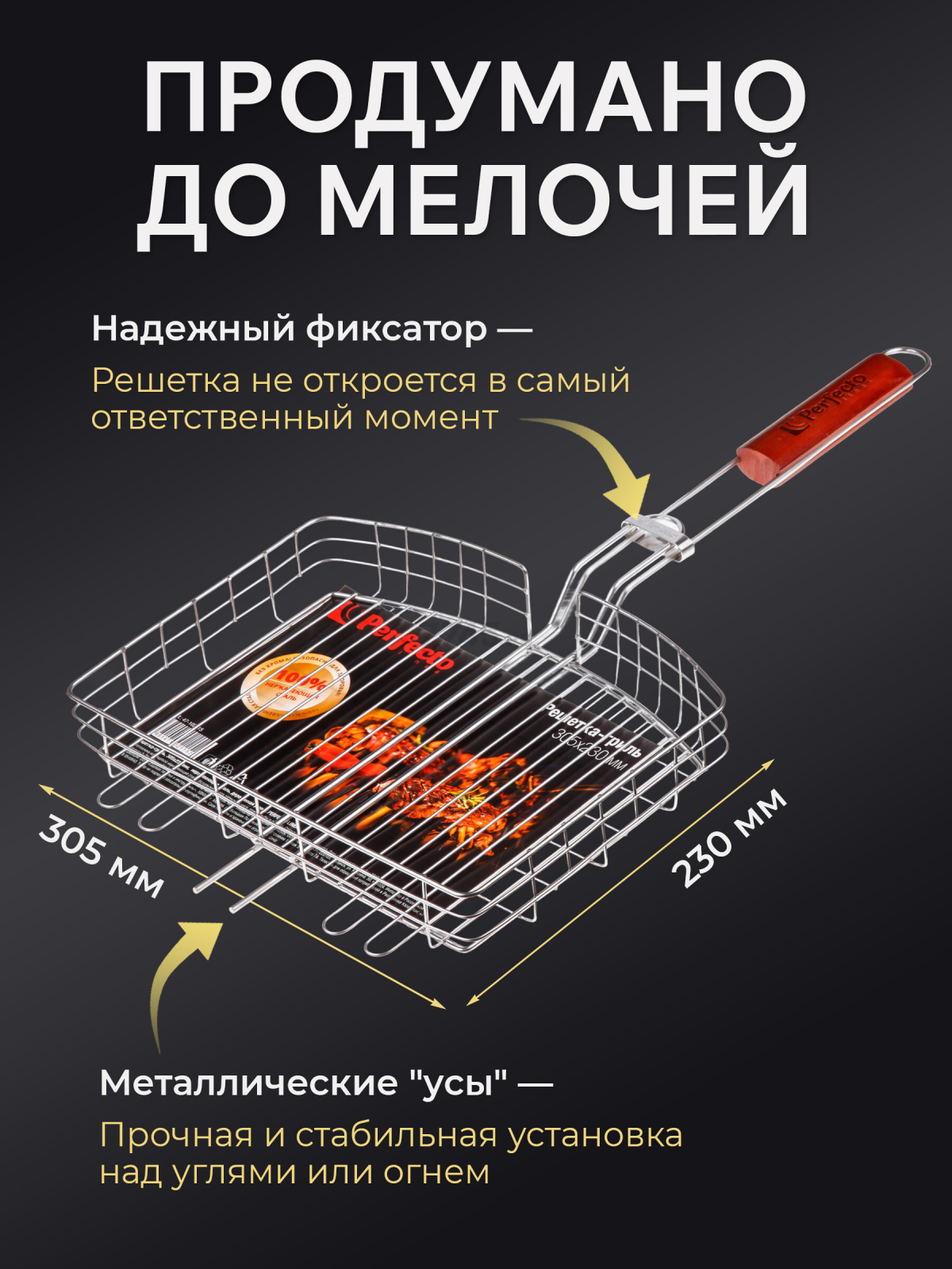 Описание товара Решетка-гриль 305x230 мм нержавеющая сталь PERFECTO LINEA (47-102115)