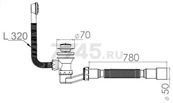 Сифон для ванны выпуск D70 перелив гибкая труба 40х40/50 AV ENGINEERING (AVE129730)
