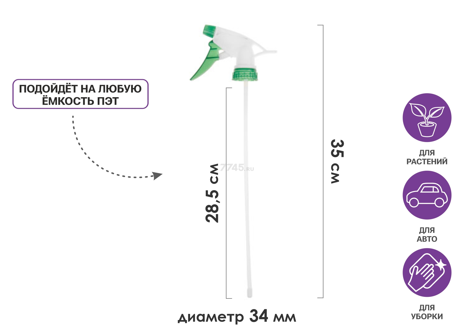 Опрыскиватель ручной PERFECTO LINEA (42-283430) - это приспособление для распыления жидкости. Имеет совместимую резьбу с любой емкостью ПЭТ. Диаметр 34 мм, длина 300 мм.