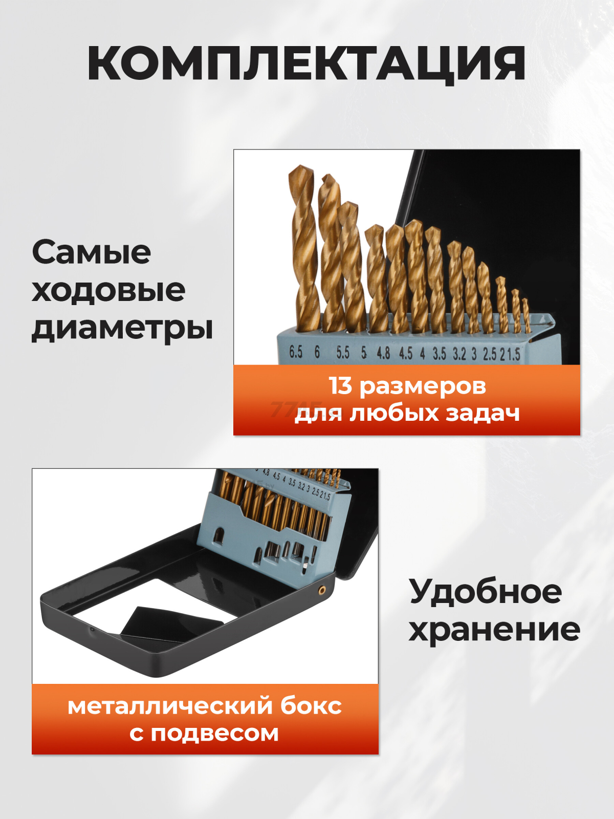 Описание товара Набор сверл по металлу 13 штук GEPARD (GP1301-13)