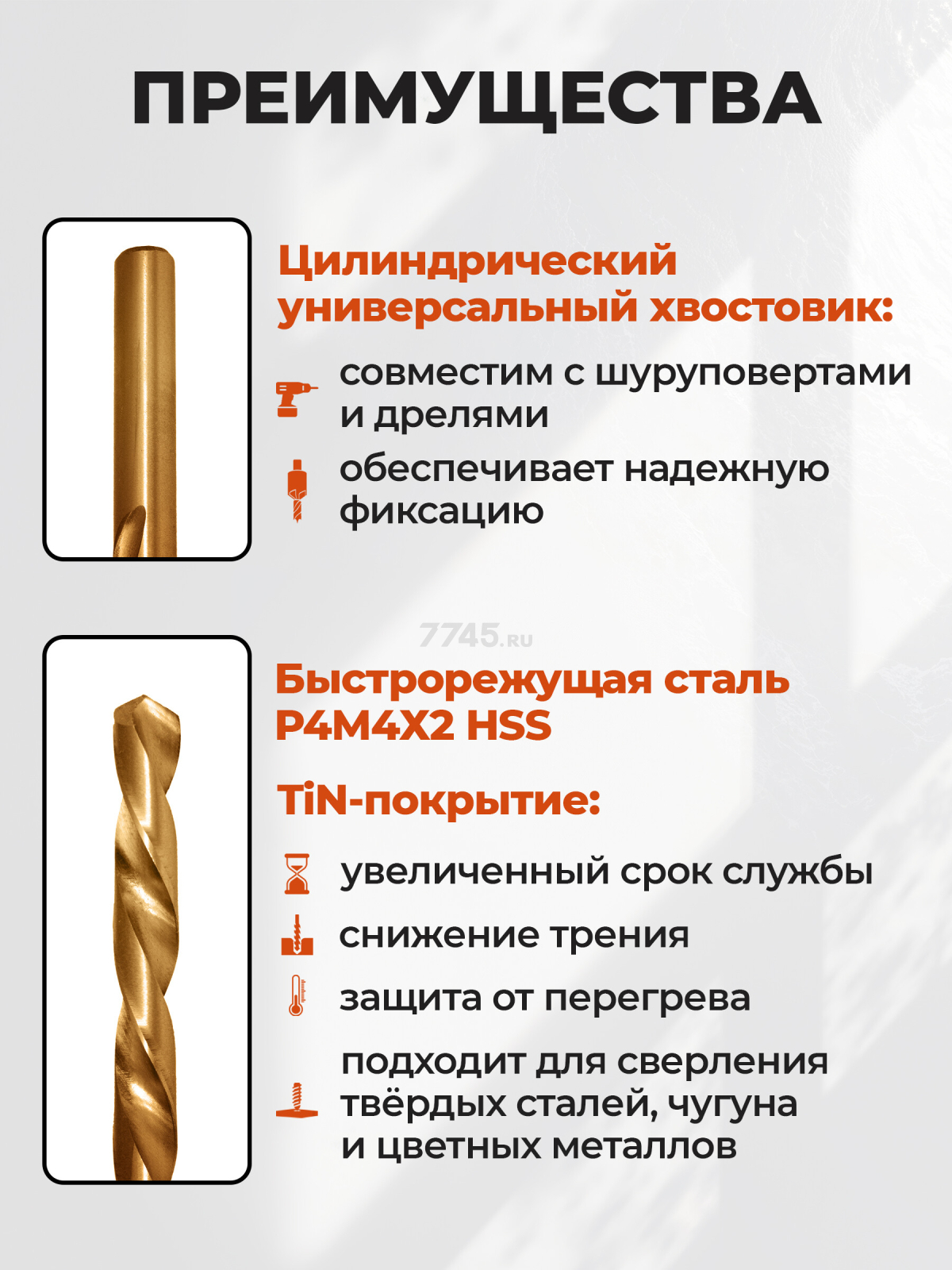 Набор сверл по металлу 13 штук GEPARD (GP1301-13) из высококачественной быстрорежущей стали. Для сверления отверстий в конструкционных углеродистых и легированных сталях, цветных металлах, чугуне, твердом пластике. Марка стали Р4М4Х2 (HSS). Нитридтитановое покрытие (TIN) для увеличения ресурса использования. Тип хвостовика цилиндрический. Комплектация (диаметр сверла) 1,5; 2,0; 2,5; 3,0; 3,2; 3,5; 4,0; 4,5; 4,8; 5,0; 5,5; 6,0; 6,5 мм.