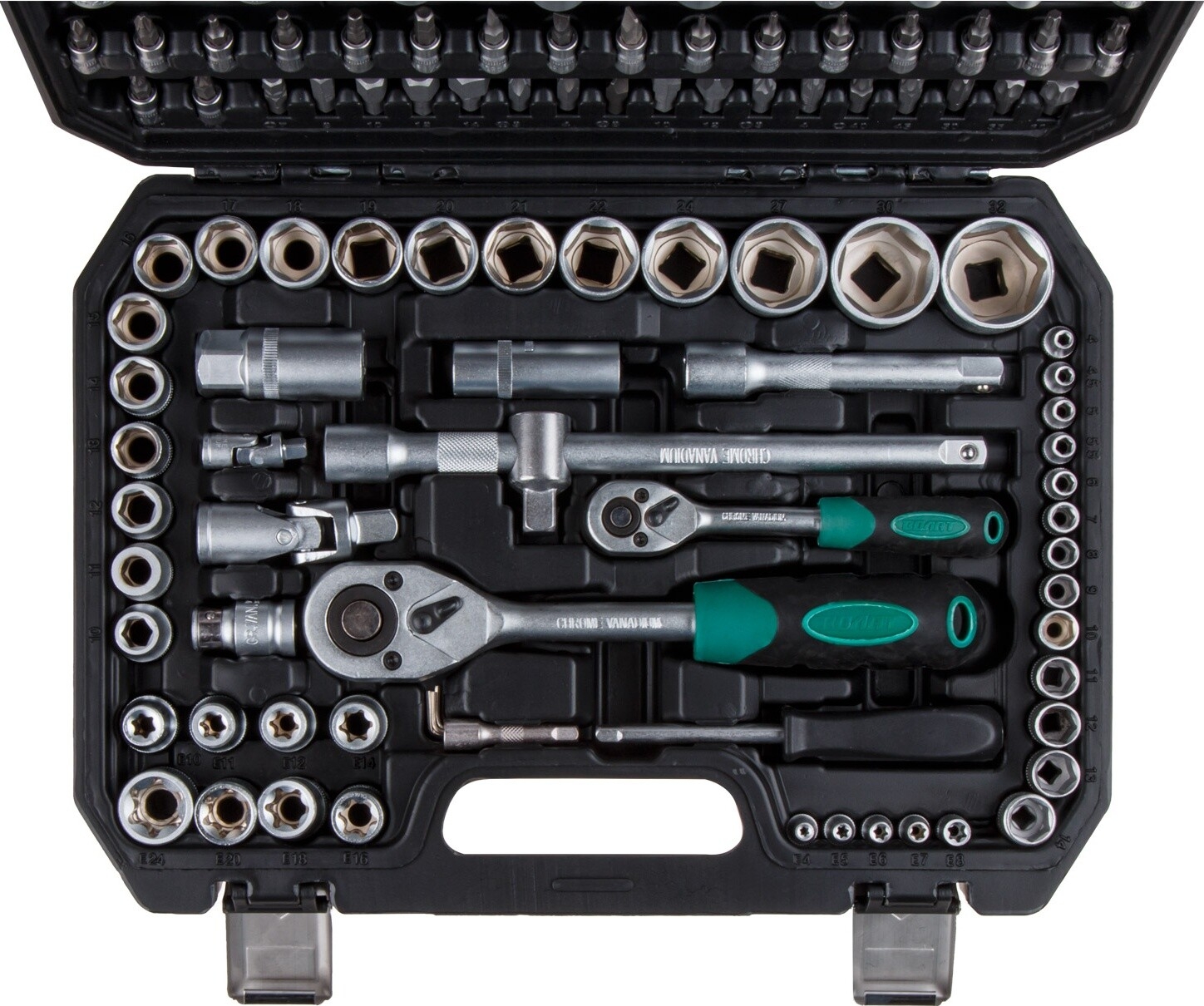 Описание товара Набор инструментов 1/4", 1/2" 6 граней 108 предметов ВОЛАТ (18520-108)