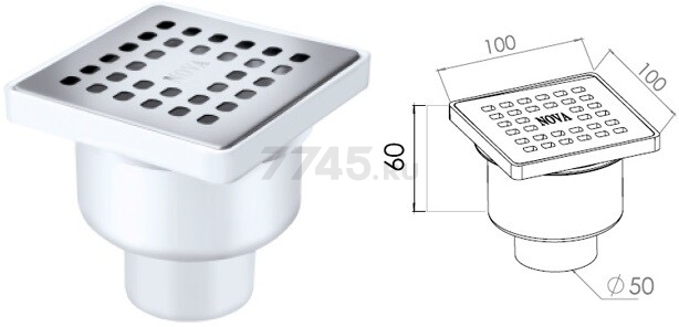 Описание товара Трап с вертикальным отводом D 50 с сухим затвором решетка нержавеющая сталь 100х100 мм AV ENGINEERING (AVE5010102)