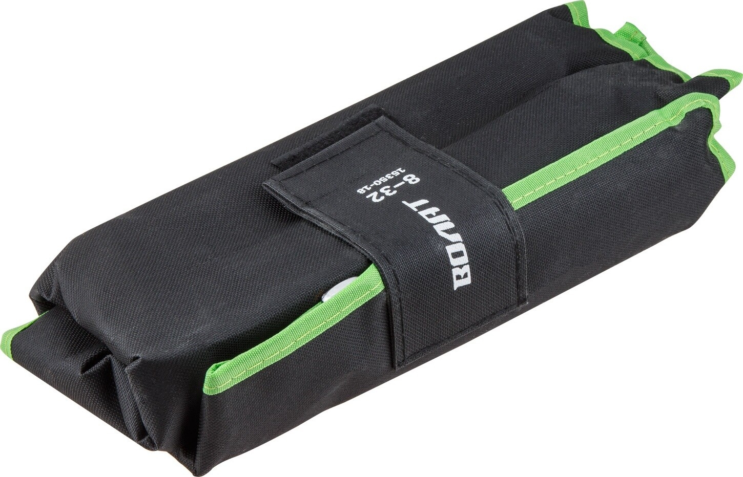 Набор ключей комбинированных 8-32 мм 18 предметов ВОЛАТ (15350-18) состоит из 18 комбинированных ключей размерами 8, 9, 10, 11, 12, 13, 14, 15, 16, 17, 18, 19, 21, 22, 24, 27, 30, 32 мм. Каждый инструмент представляет собой сочетание из рожкового и накидного ключа, расположенных на одной общей рукоятке.