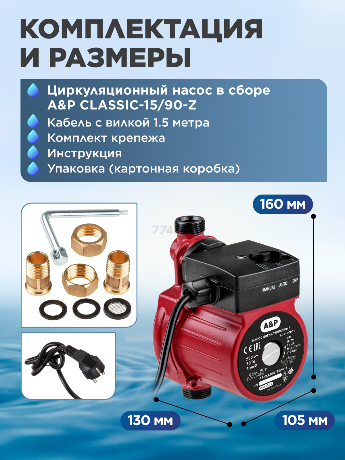Информация о товаре Насос циркуляционный A&P Classic-15/90-Z (AP118C001)