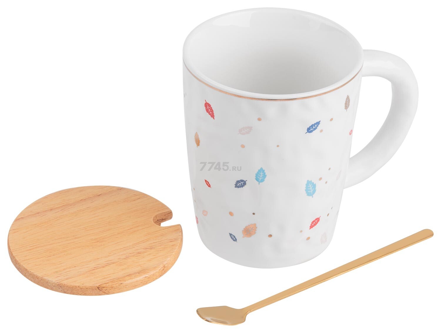 Кружка керамическая PERFECTO LINEA Autumn foliages с крышкой и ложкой 360 мл (30-851060)