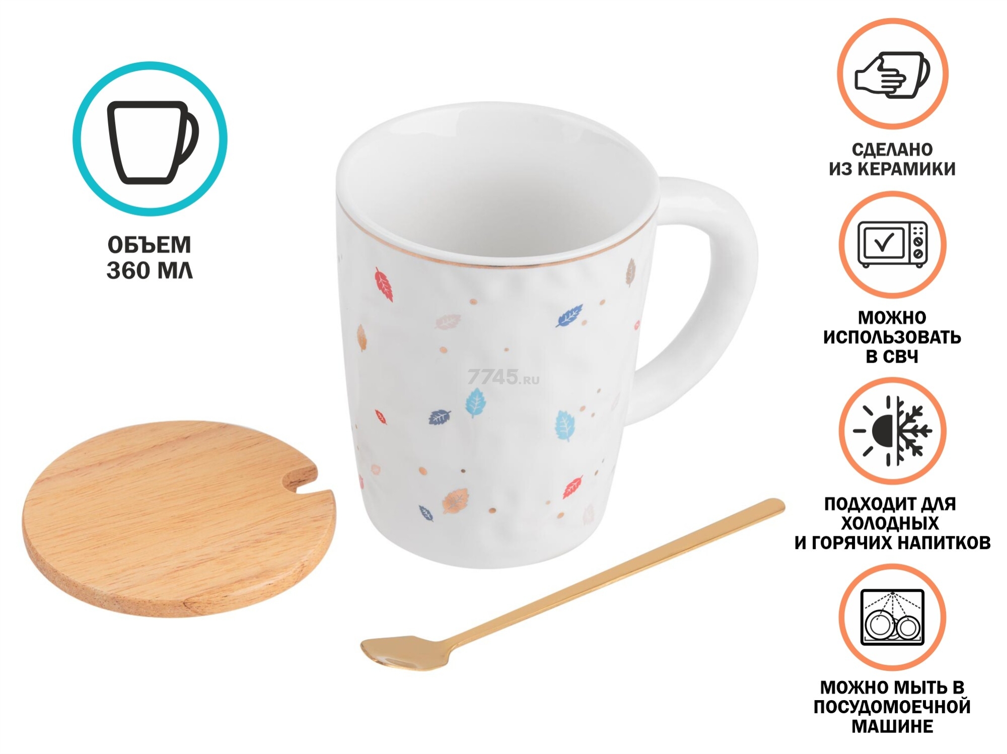 Информация о товаре Кружка керамическая PERFECTO LINEA Autumn foliages с крышкой и ложкой 360 мл (30-851060)