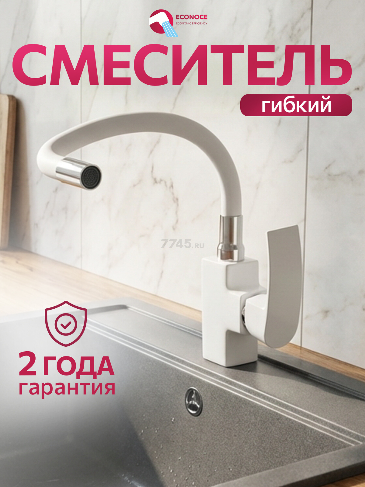 Информация о товаре Смеситель для кухни ECONOCE серия 270 белый (EC0274WT)