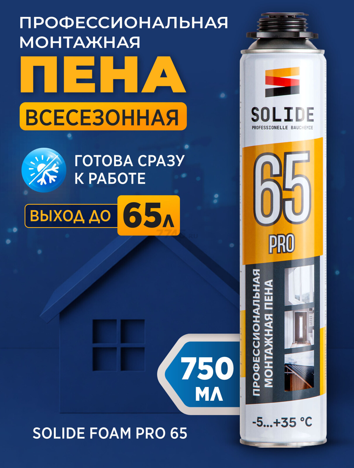 Описание товара Пена монтажная SOLIDE Foam Pro 65 750 мл (SL-76517-1)