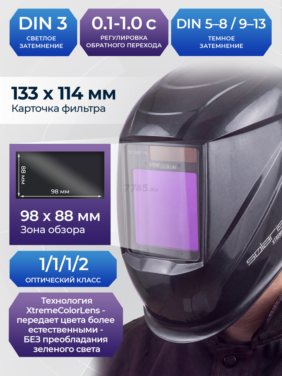 Описание товара Маска сварочная хамелеон SOLARIS ASF820X (SL5717-2)