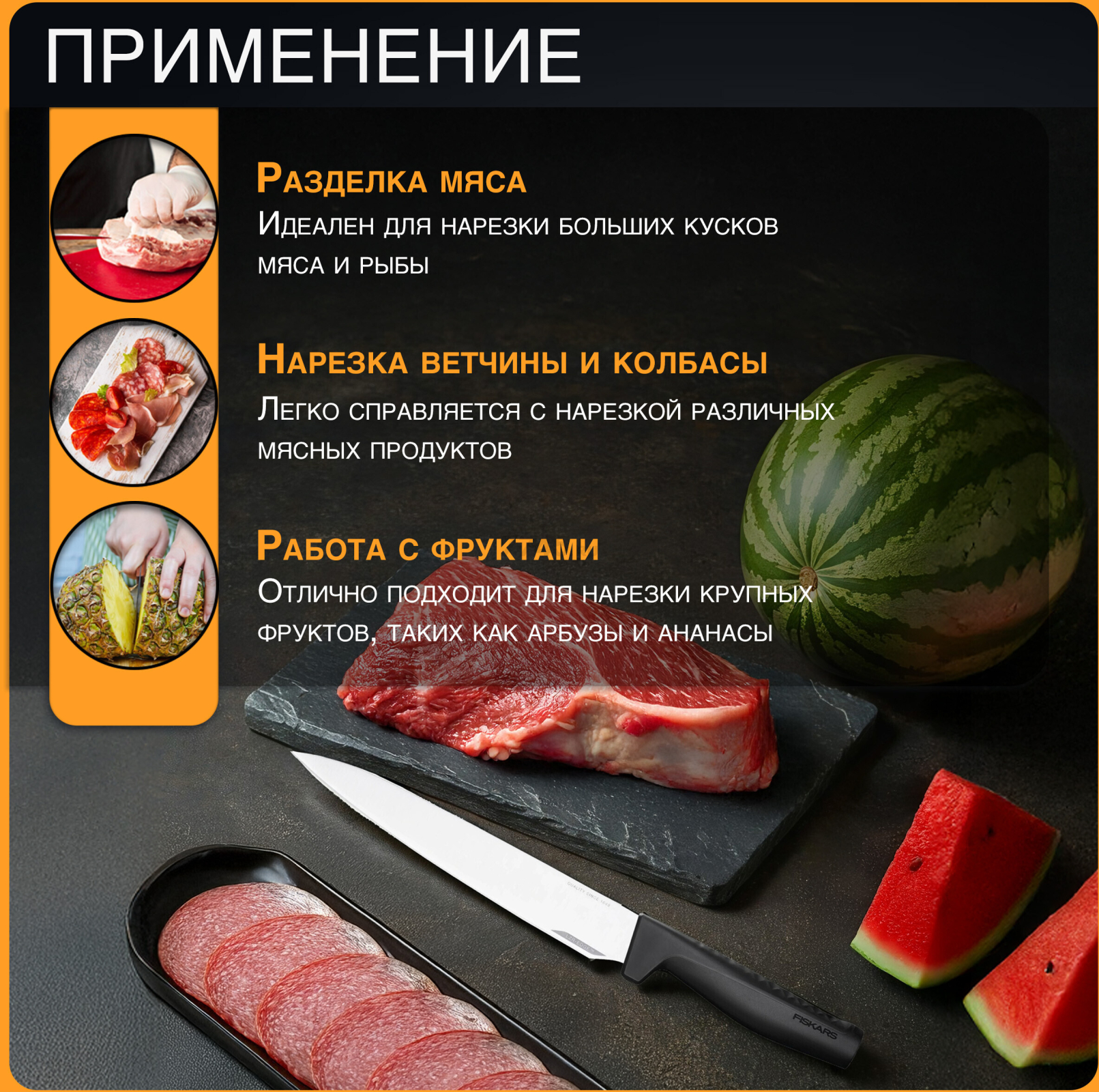 Информация о товаре Нож разделочный FISKARS Hard Edge 22 см (1051760)