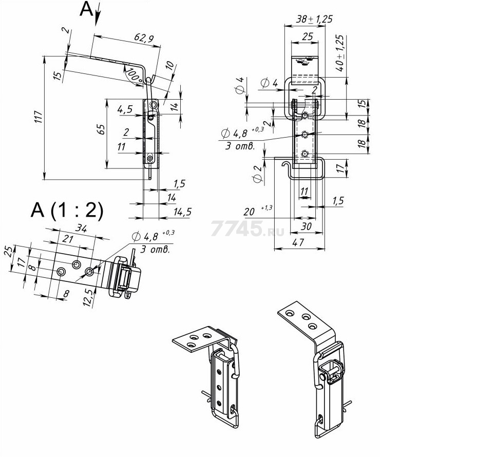 Основные элементы конструкции: основание, рычаг, крючок, серьга, ось, стопорная вилка (шпилька).
