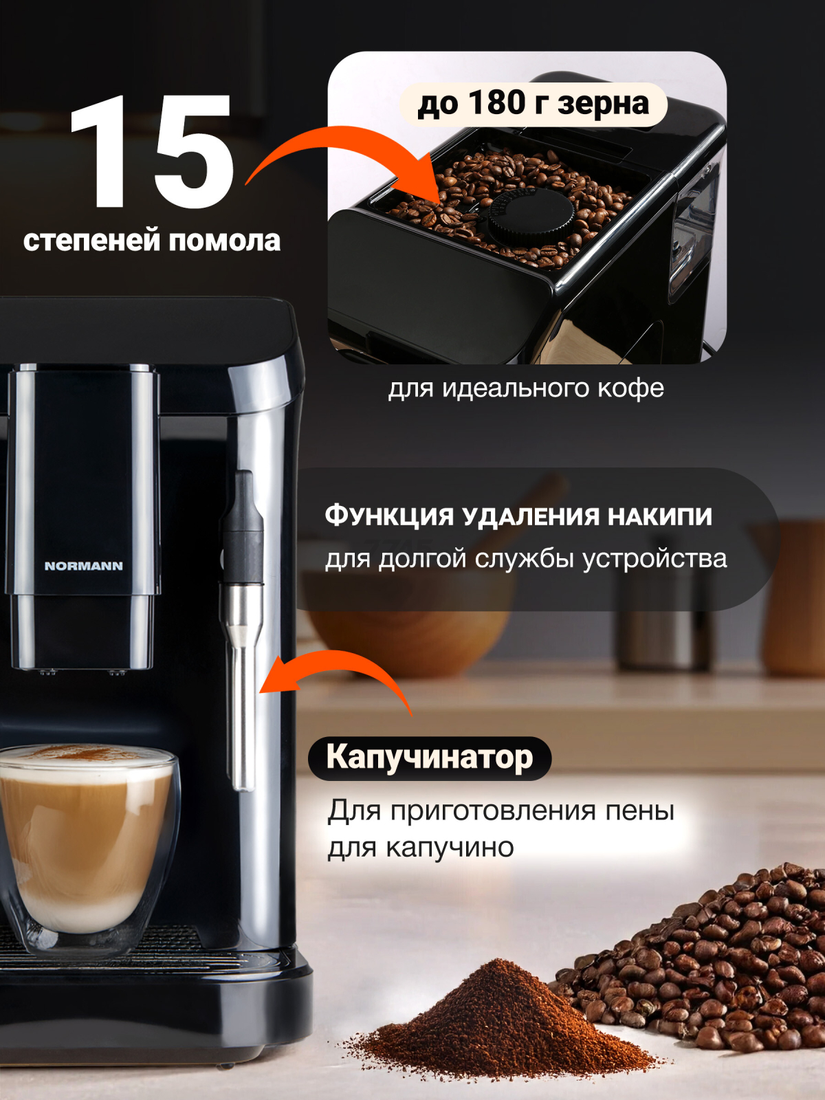 Кофемашина NORMANN ACM-528 (N16020-1) предназначена для приготовления различных видов кофе с максимальным удобством и качеством. Вот её основные преимущества: