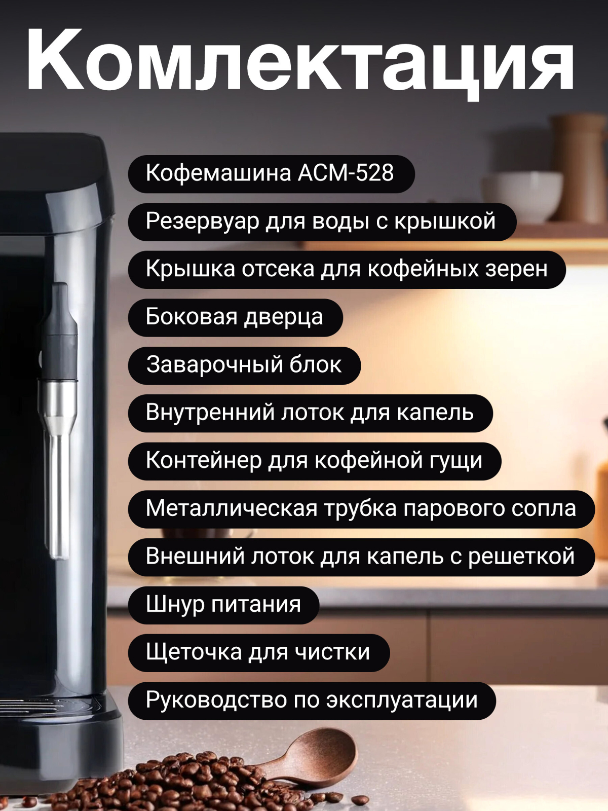- Крышка отсека для кофейных зерен