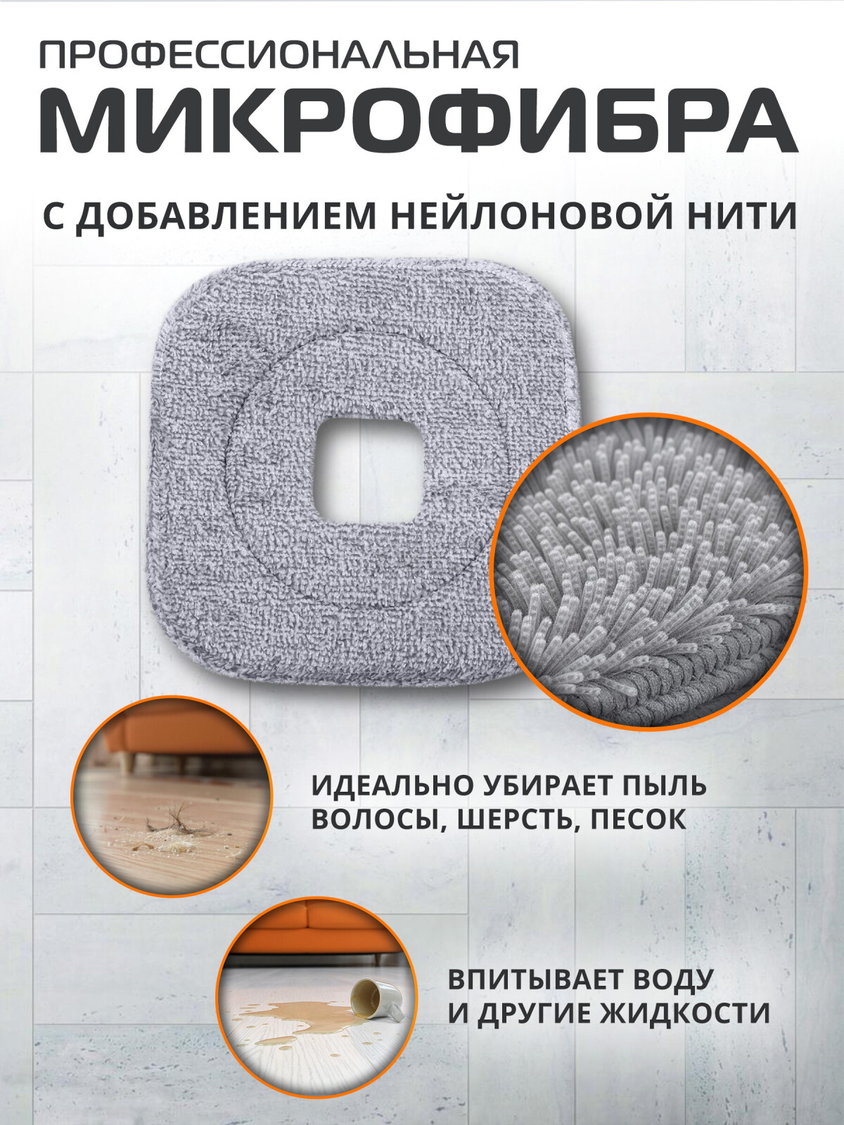 Сменная насадка для швабры BRUNER Helfer (BR-11278114) - профессиональная тряпка для пола из микрофибры с добавлением нейлоновой нити. Идеально убирает пыль, волосы, шерсть и песок. Отлично впитывает воду и другие жидкости. Надежно фиксируется умным креплением Velcro.