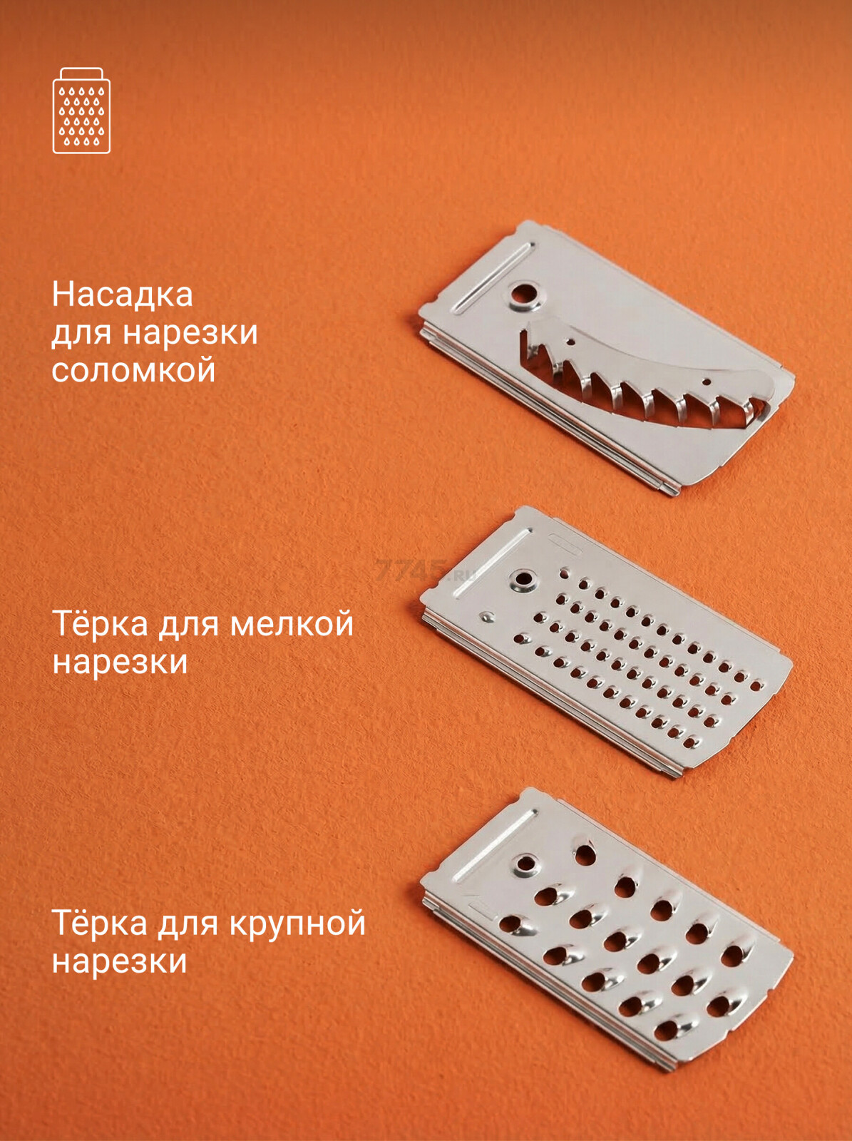 - Нож для мелкой шинковки — диаметр около 2,8 мм, оптимален для корейской моркови.