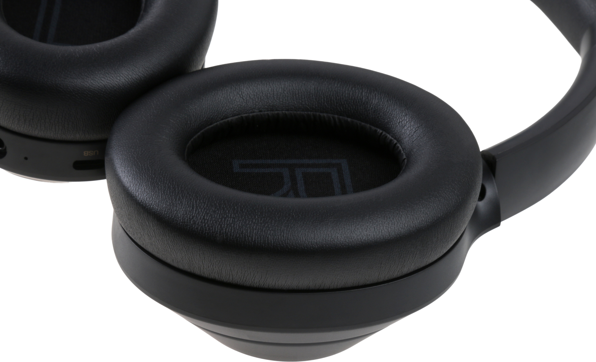 Корпус выполнен из пластика, амбушюры и покрытие оголовья — из экокожи. Конструкция предусматривает поворотные чашки и складное оголовье, что удобно для транспортировки. Оголовье регулируемое. Степень защиты IPX4 обеспечивает устойчивость к влаге и брызгам.