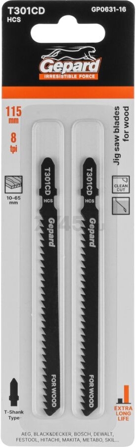 Пилка для электролобзика GEPARD по дереву T301CD 2 штуки (GP0631-16)