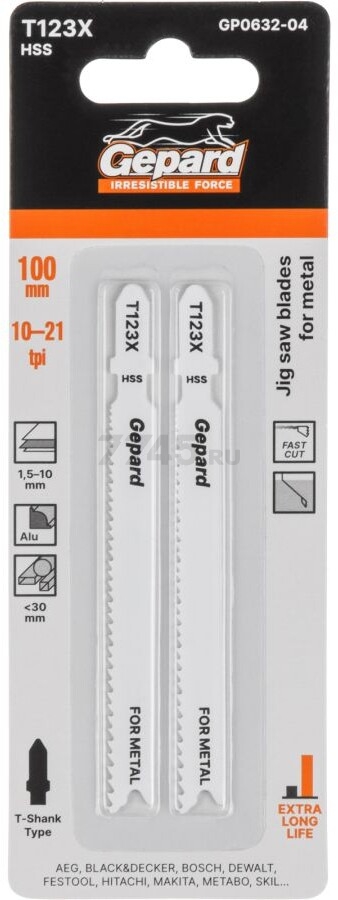 Описание товара Пилка для электролобзика GEPARD по металлу T123X 2 штуки (GP0632-04)