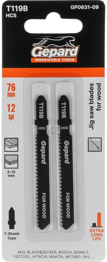 Пилка для электролобзика GEPARD по дереву T119B 2 штуки (GP0631-09)