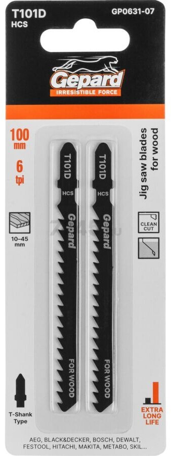 Пилка для электролобзика GEPARD по дереву T101D 2 штуки (GP0631-07)