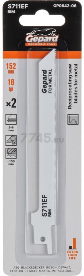 Полотно для сабельной пилы GEPARD по металлу S711EF 152 мм 2 штуки (GP0642-06) - сменный пильный элемент для сабельных пил используется для чистого криволинейного пиления листовой стали, профилей, мягких металлов, пластика.
