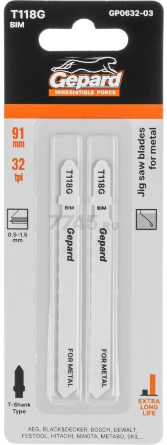 Описание товара Пилка для электролобзика GEPARD по металлу T118G 2 штуки (GP0632-03)