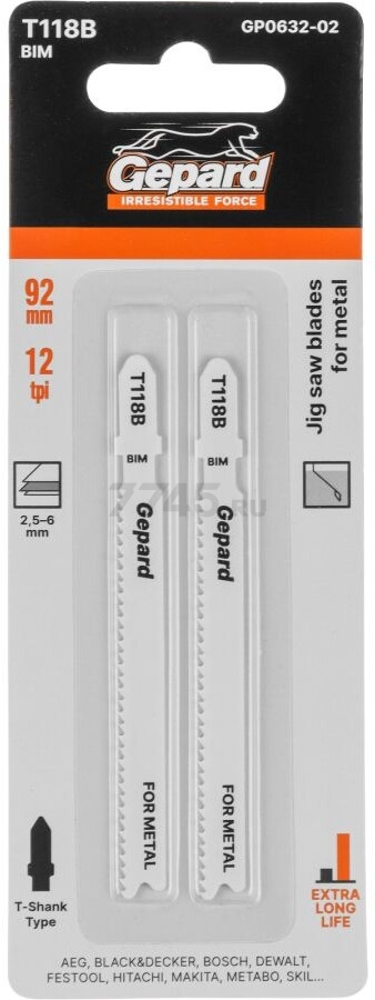 Пилка для электролобзика GEPARD по металлу T118B 2 штуки (GP0632-02)