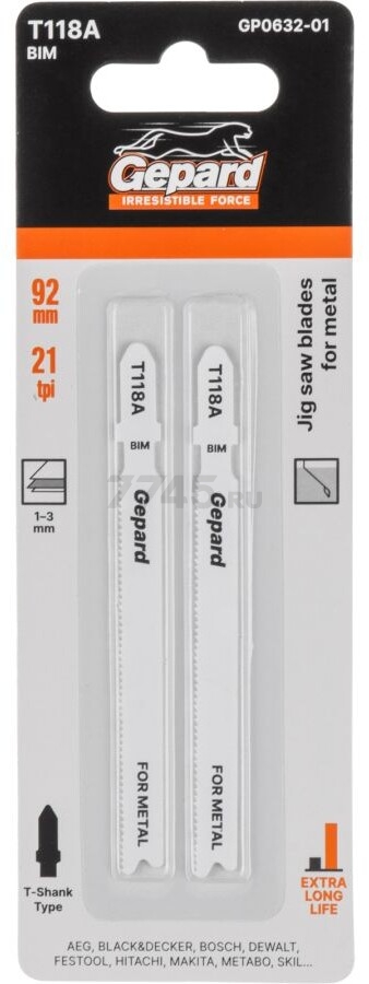 Описание товара Пилка для электролобзика GEPARD по металлу T118А 2 штуки (GP0632-01)