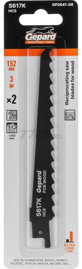 Описание товара Полотно для сабельной пилы GEPARD по дереву S617K 152 мм 2 штуки (GP0641-06)