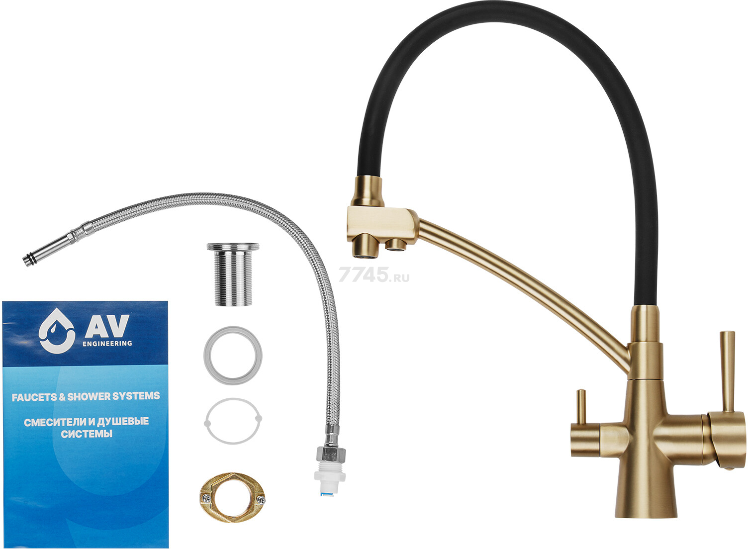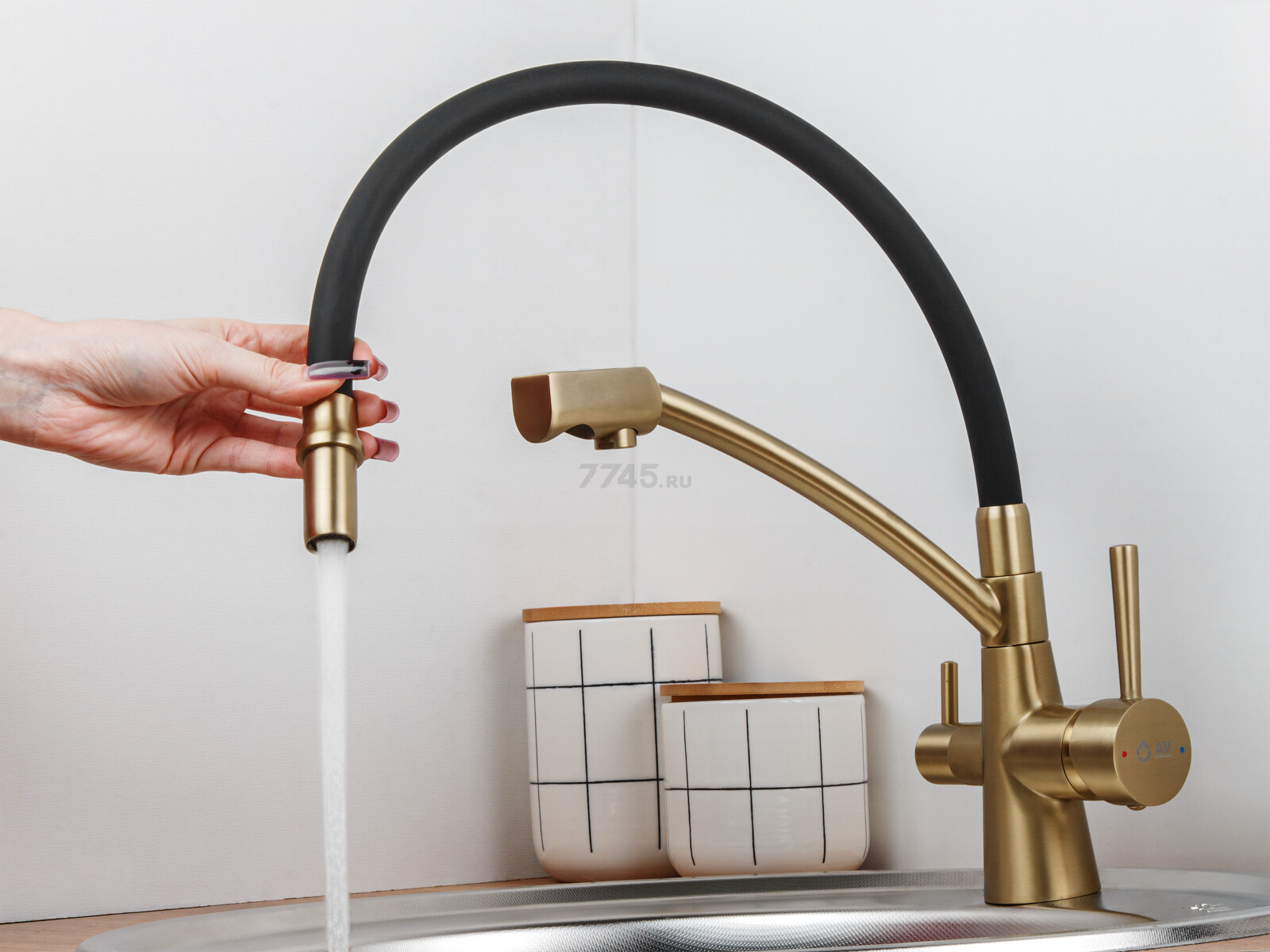 Информация о товаре Смеситель для кухни AV ENGINEERING Lux D35 золотой, черный (AVLUX4-A49GLB)