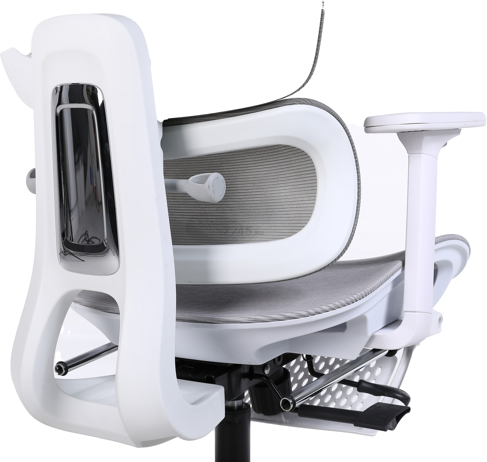 Кресло оснащено регулируемым поясничным упором, 3D-подлокотниками и подставкой для ног, что обеспечивает правильную посадку, снижает нагрузку на позвоночник и уменьшает усталость при длительном сидении. Сиденье оборудовано слайдером для регулировки глубины, а подголовник и высота спинки легко регулируются под индивидуальные потребности пользователя. Механизм синхронного качания с блокировкой и регулировкой жесткости качания позволяет выбрать оптимальное положение для работы или отдыха, а газлифт 3 класса обеспечивает надежную регулировку высоты.