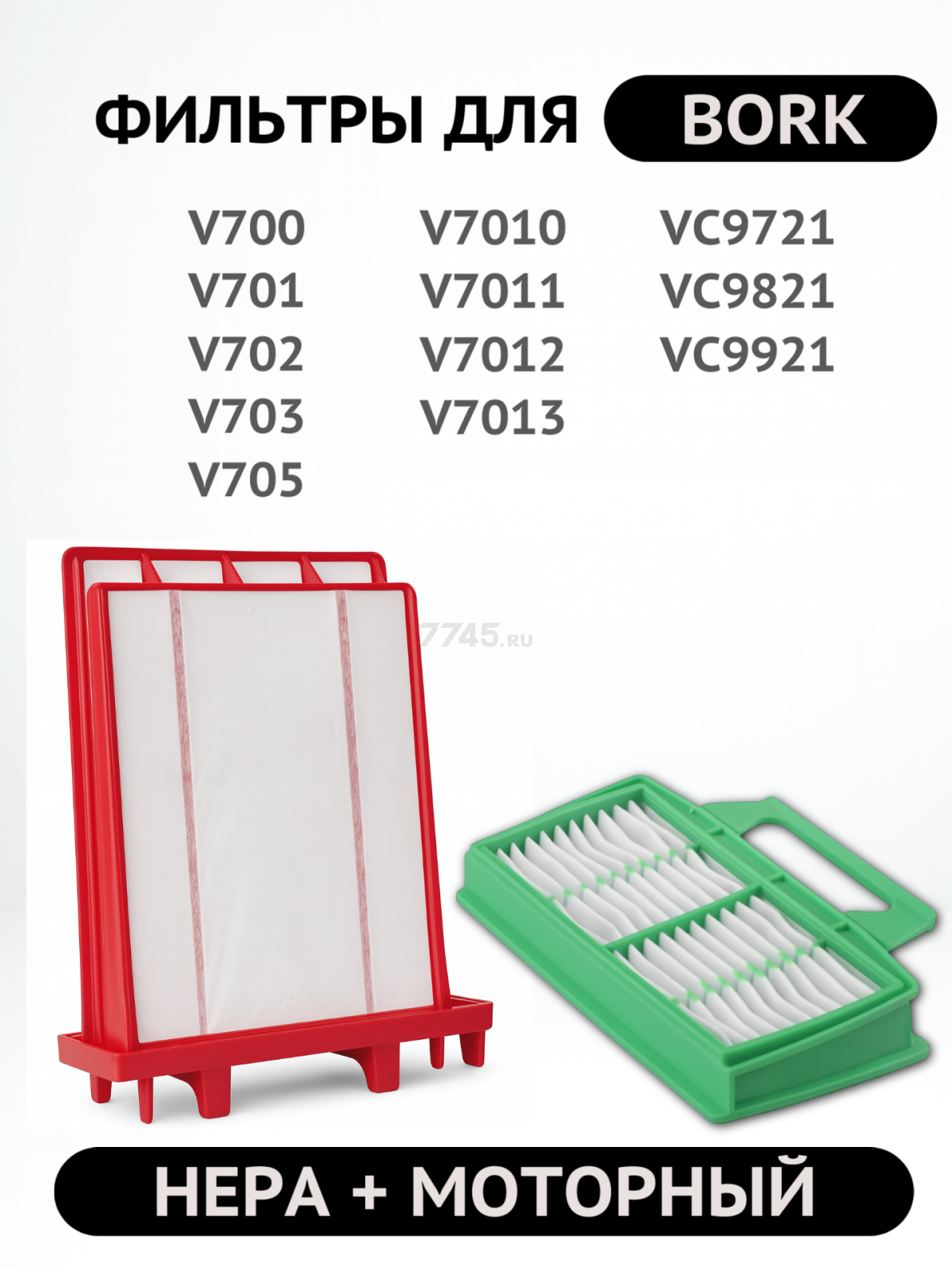 | Применимость | Bork V700, Bork V701, Bork V7010, Bork V7011, Bork V7012, Bork V7013, Bork V702, Bork V703, Bork V705, Bork VC9721, Bork VC9821, Bork VC9921, Thomas Airtec, Thomas Airtec RC |