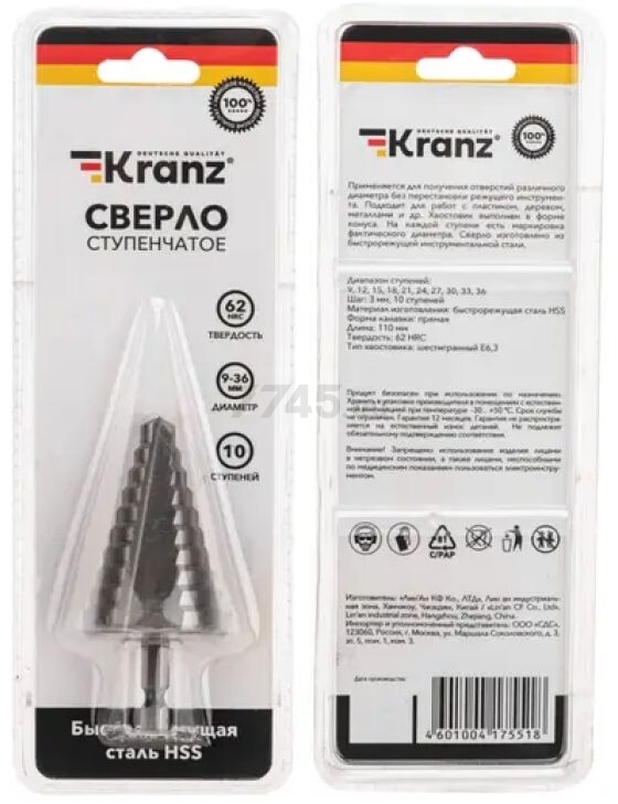 Информация о товаре Сверло по металлу ступенчатое 9,0-36,0 мм KRANZ HRC 62 (KR-12-6604)