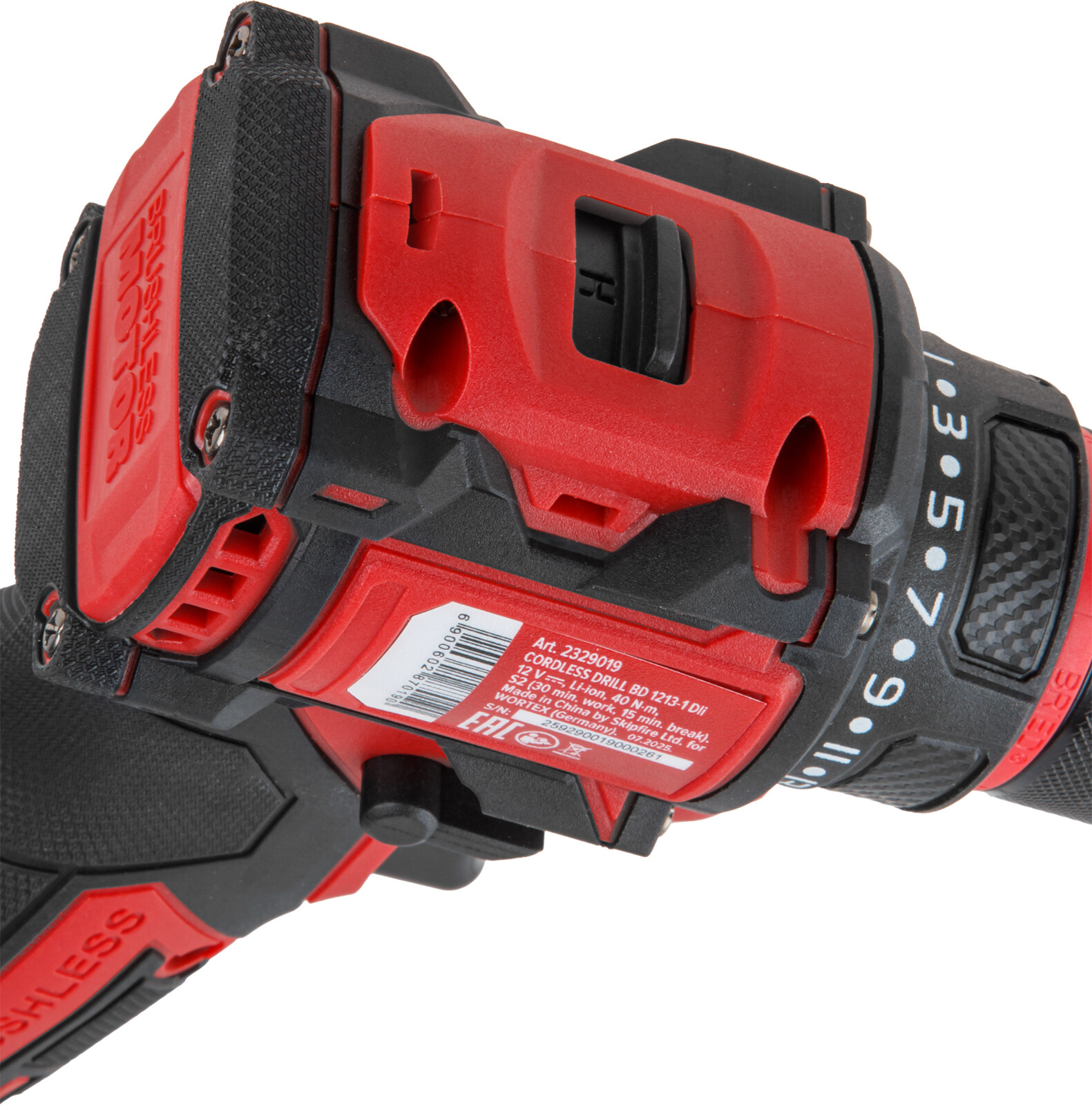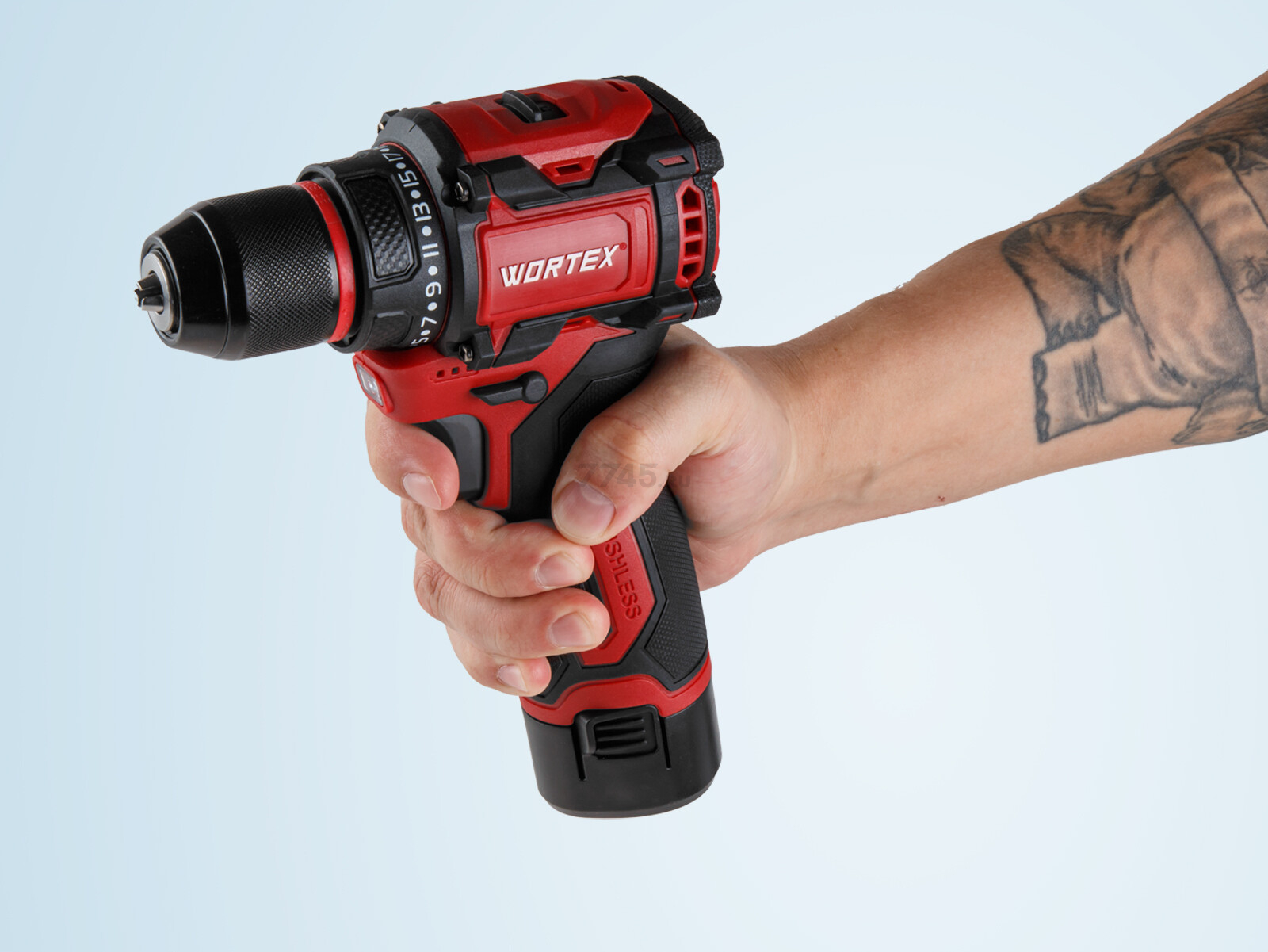 Дрель-шуруповерт аккумуляторная WORTEX BD 1213-1 Dli (2329019) оснащена мощным бесщеточным двигателем, обеспечивающим высокую производительность и долгий срок службы.