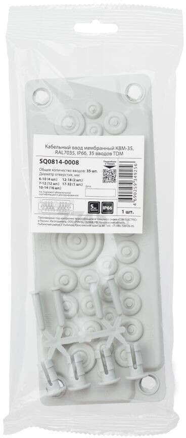 Описание товара Ввод кабельный мембранный TDM КВМ-35 35 отверстий d 6-32 мм серый (SQ0814-0008)