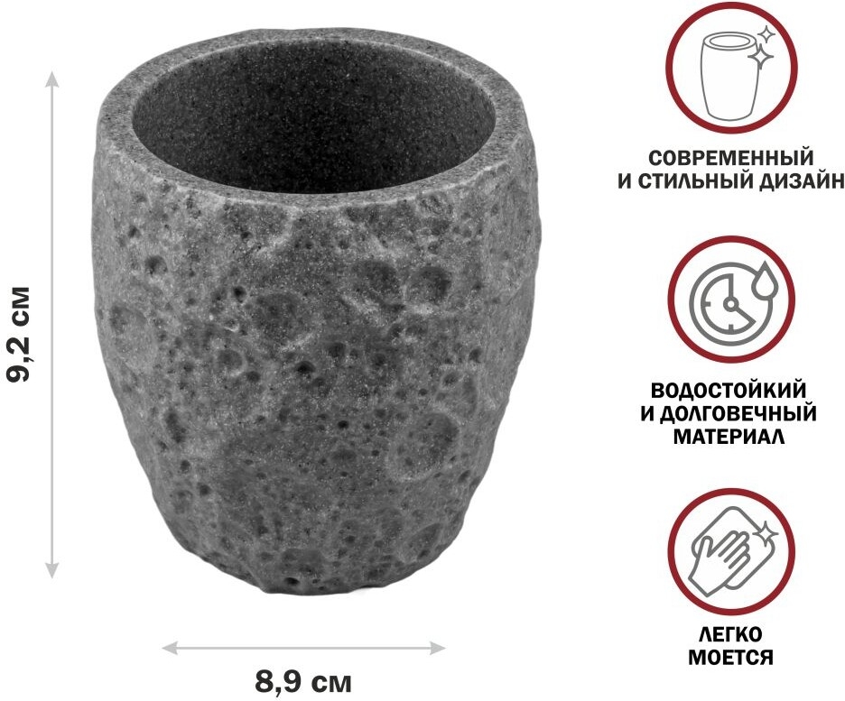 Стакан PERFECTO LINEA Moon Stone серый (35-384462) - необычный дизайн, созданный с помощью композитного материала: полирезина под натуральный камень. Благодаря такой структуре изделие имеет низкую теплопроводность, приятное на ощупь, а также устойчиво к влаге и повышенным температурам.