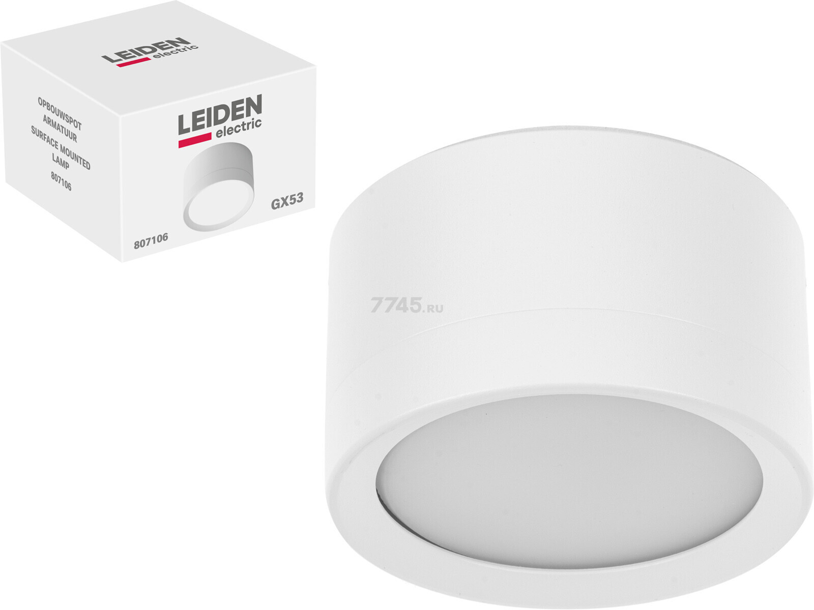 Светильник точечный накладной GX53 15 Вт LEIDEN ELECTRIC белый (807106)