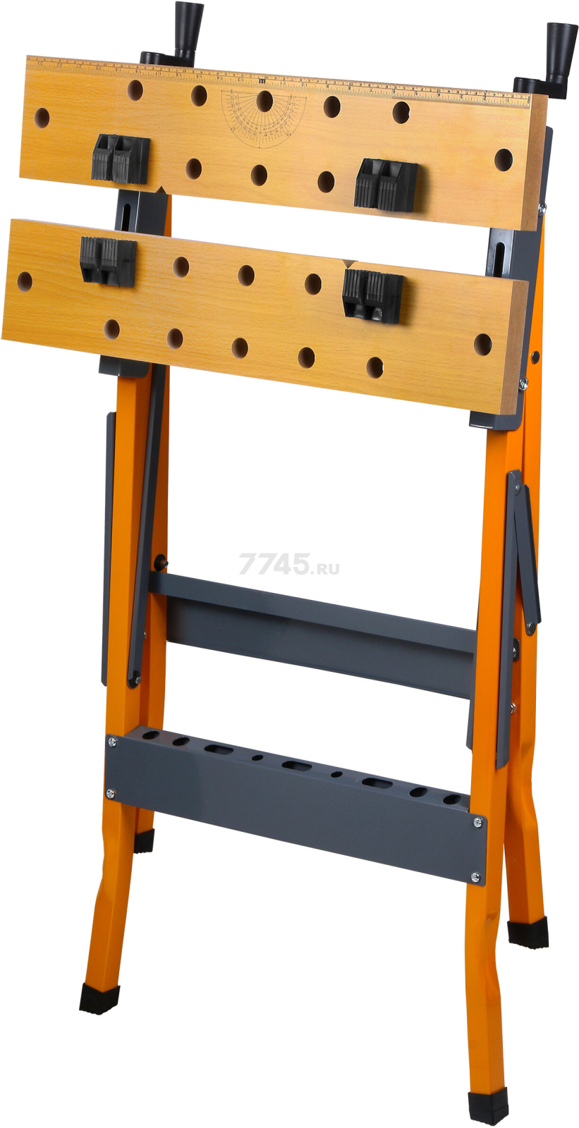 Габариты 605×640×790 мм делают верстак комфортным по высоте и компактным в сложенном виде. Переносной верстак предназначен для бытового использования внутри помещений при температуре от –9 до +35 °C и особенно удобен тем, кто ценит мобильность и возможность быстро развернуть полноценное рабочее место, а затем так же быстро убрать его, освободив пространство.