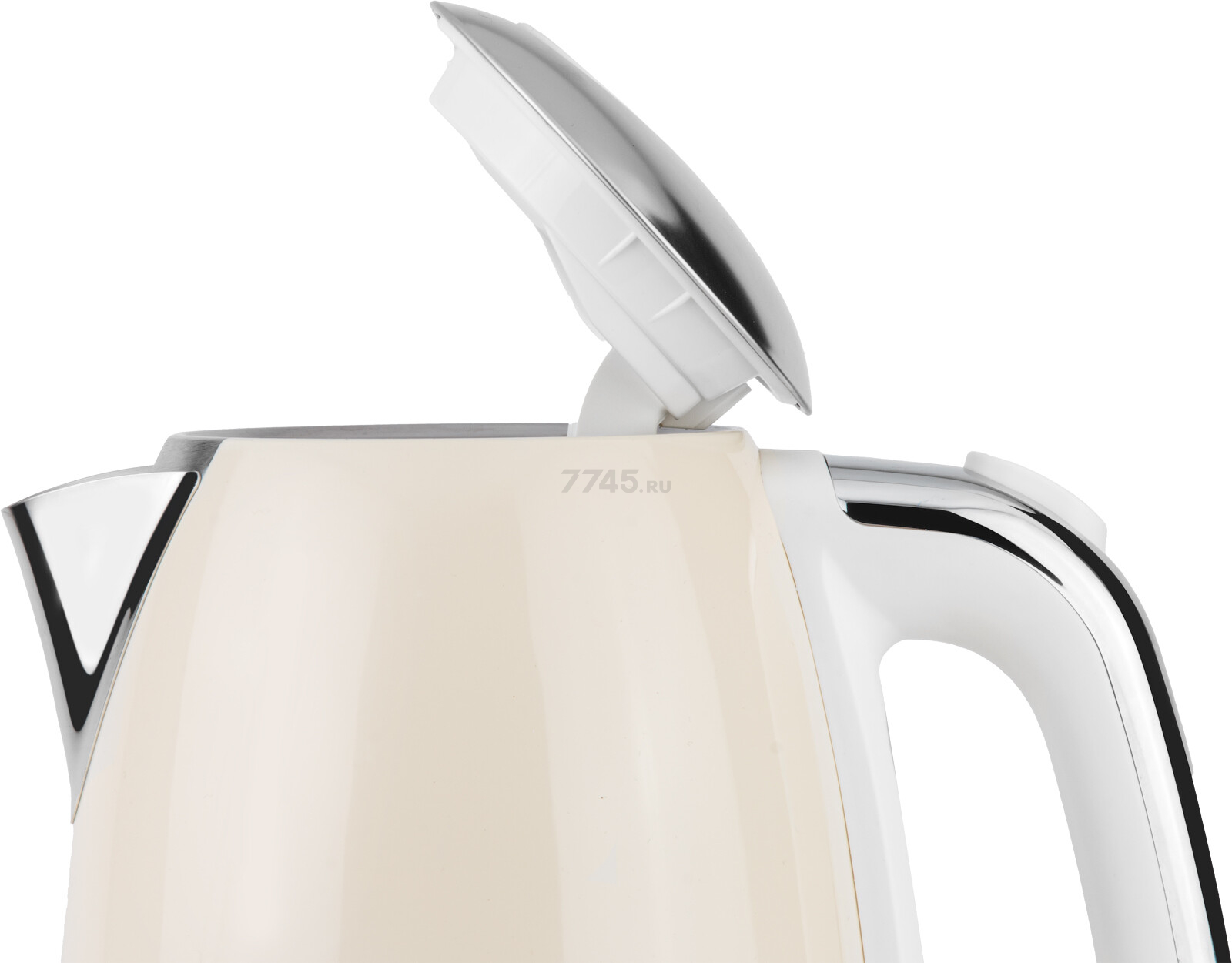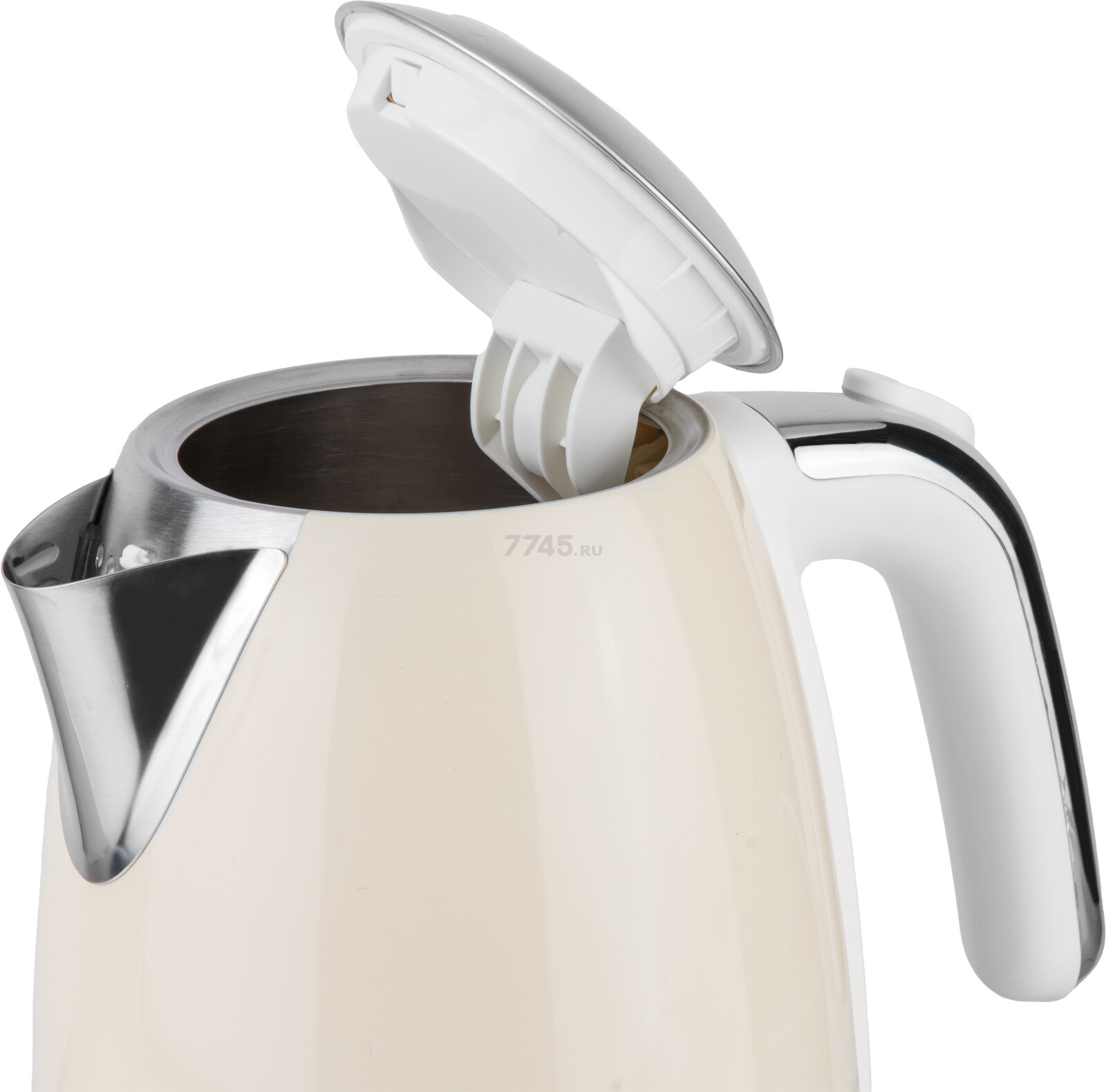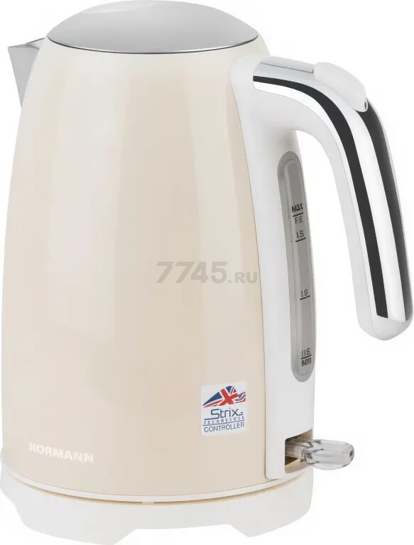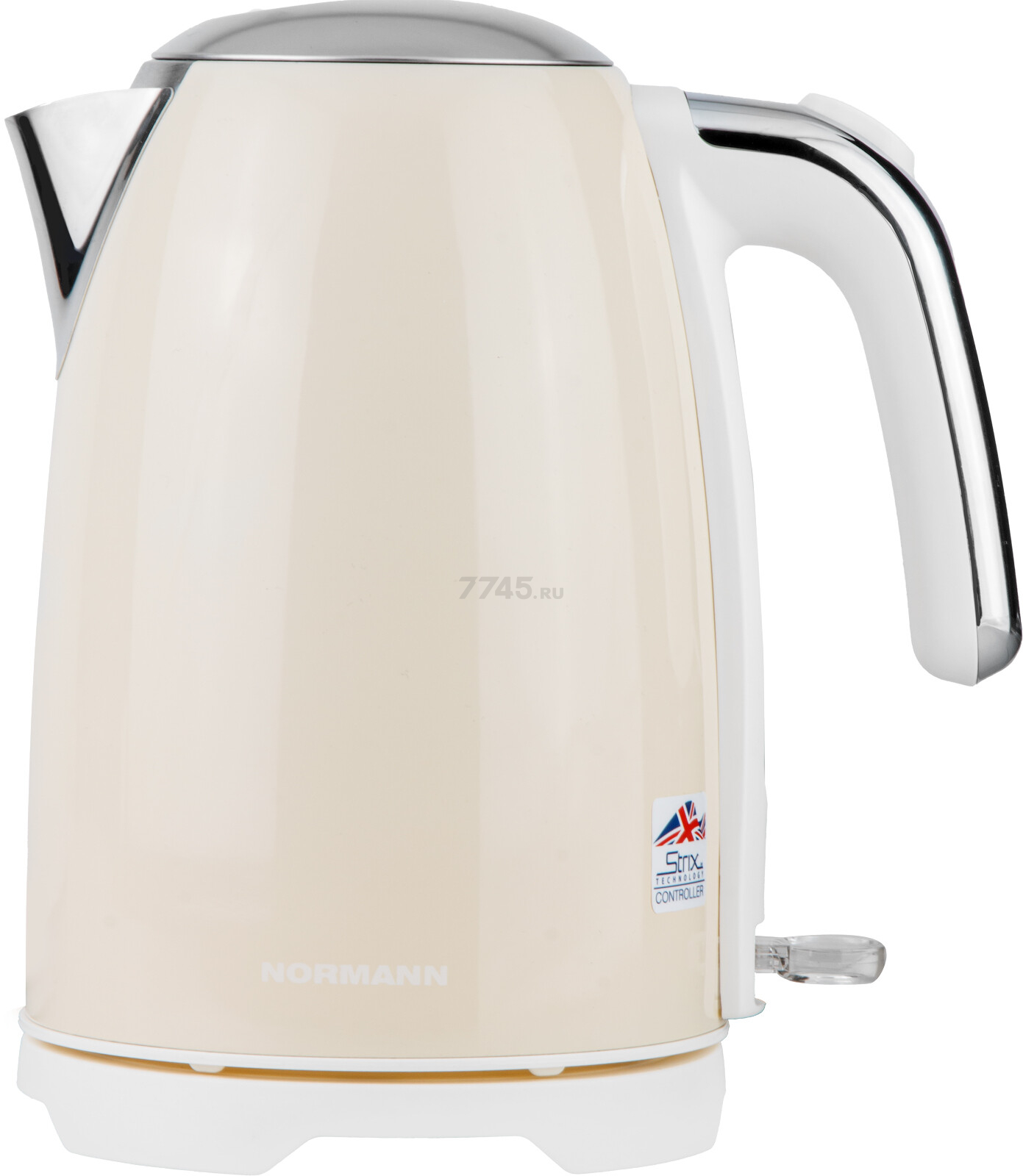Чайник электрический NORMANN AKL-145 (N16039-6) — современный бытовой электрочайник объемом 1,7 литра с мощностью 2200 Вт (1850 Вт номинальная). Оснащен закрытой спиралью для быстрого и безопасного нагрева воды. Корпус выполнен из нержавеющей стали бежевого цвета, а конструкция предусматривает подставку с возможностью вращения для удобного использования. Встроенный фильтр обеспечивает чистоту воды при наливе, а отсек для шнура упрощает хранение. Чайник оборудован функциями индикации включения и уровня воды, блокировкой включения без воды, а также защитой от перегрева и автоматическим отключением. Удобная ручка позволяет легко переносить прибор.