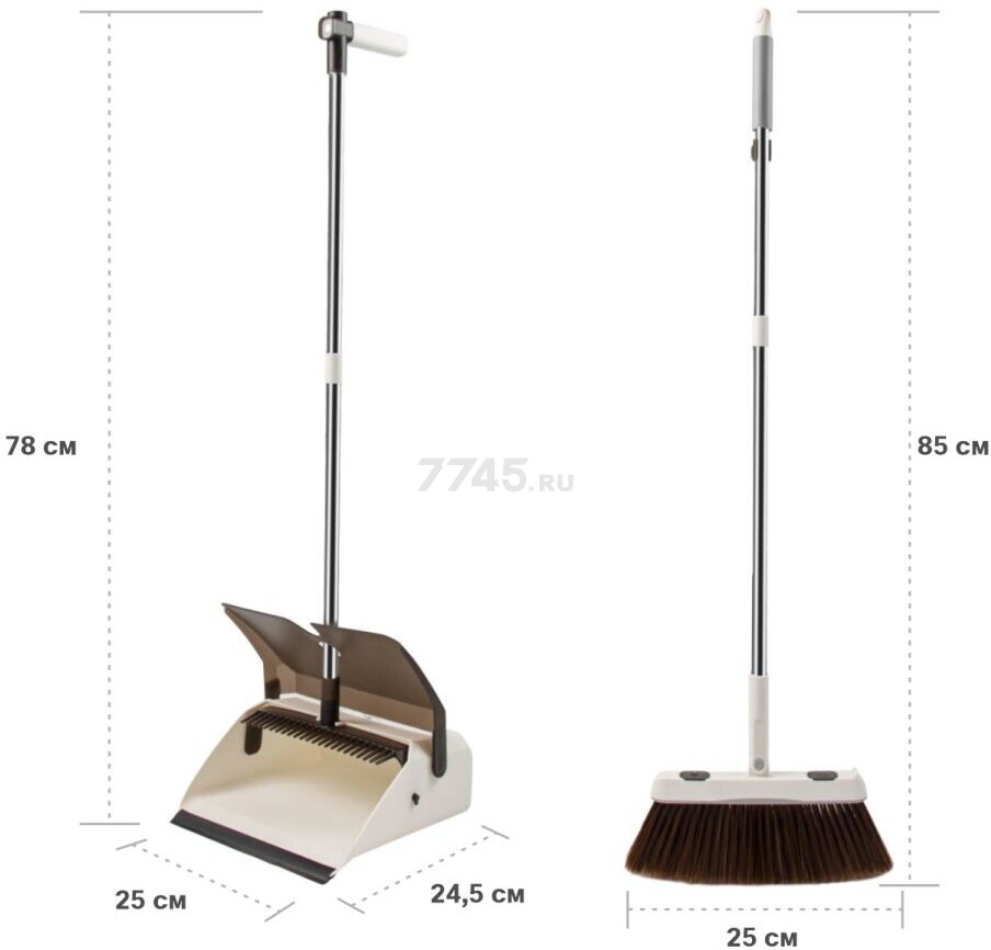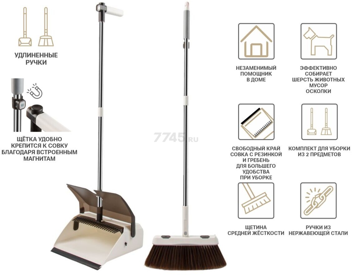 Набор для уборки PERFECTO LINEA Magnet Grip (43-242578) с удлиненными ручками, что позволяет производить уборку не наклоняясь. Совок открытого типа имеет обрезиненную кромку, благодаря чему облегчает процесс подметания и не царапает напольное покрытие. Набор компактно складывается, не занимая много места, и легко разбирается благодаря резьбе на ручках.