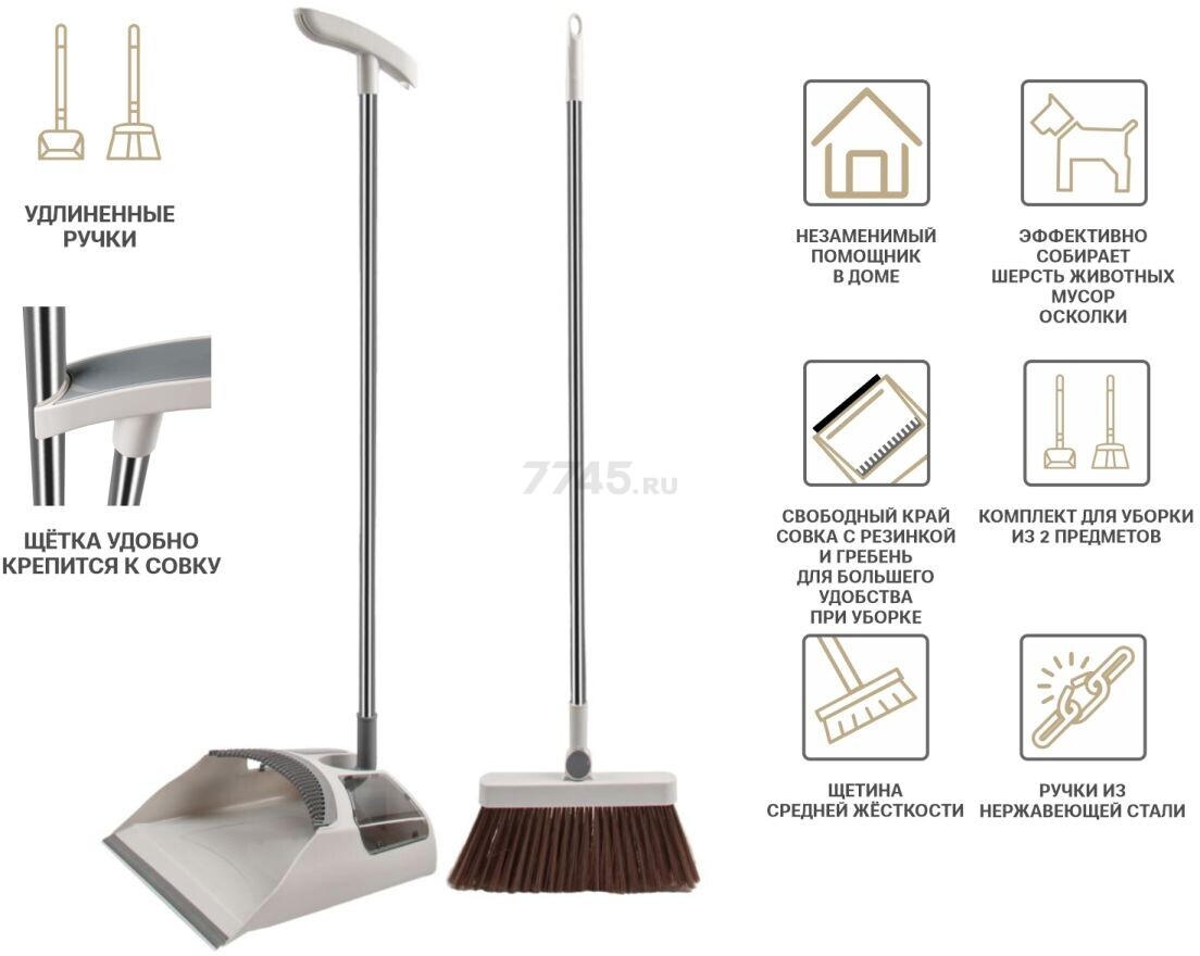 Набор для уборки PERFECTO LINEA Easy Grip (43-292783) с удлиненными ручками, что позволяет производить уборку не наклоняясь. Совок открытого типа имеет обрезиненную кромку, благодаря чему облегчает процесс подметания и не царапает напольное покрытие. Набор компактно складывается, не занимая много места, и легко разбирается благодаря резьбе на ручках.