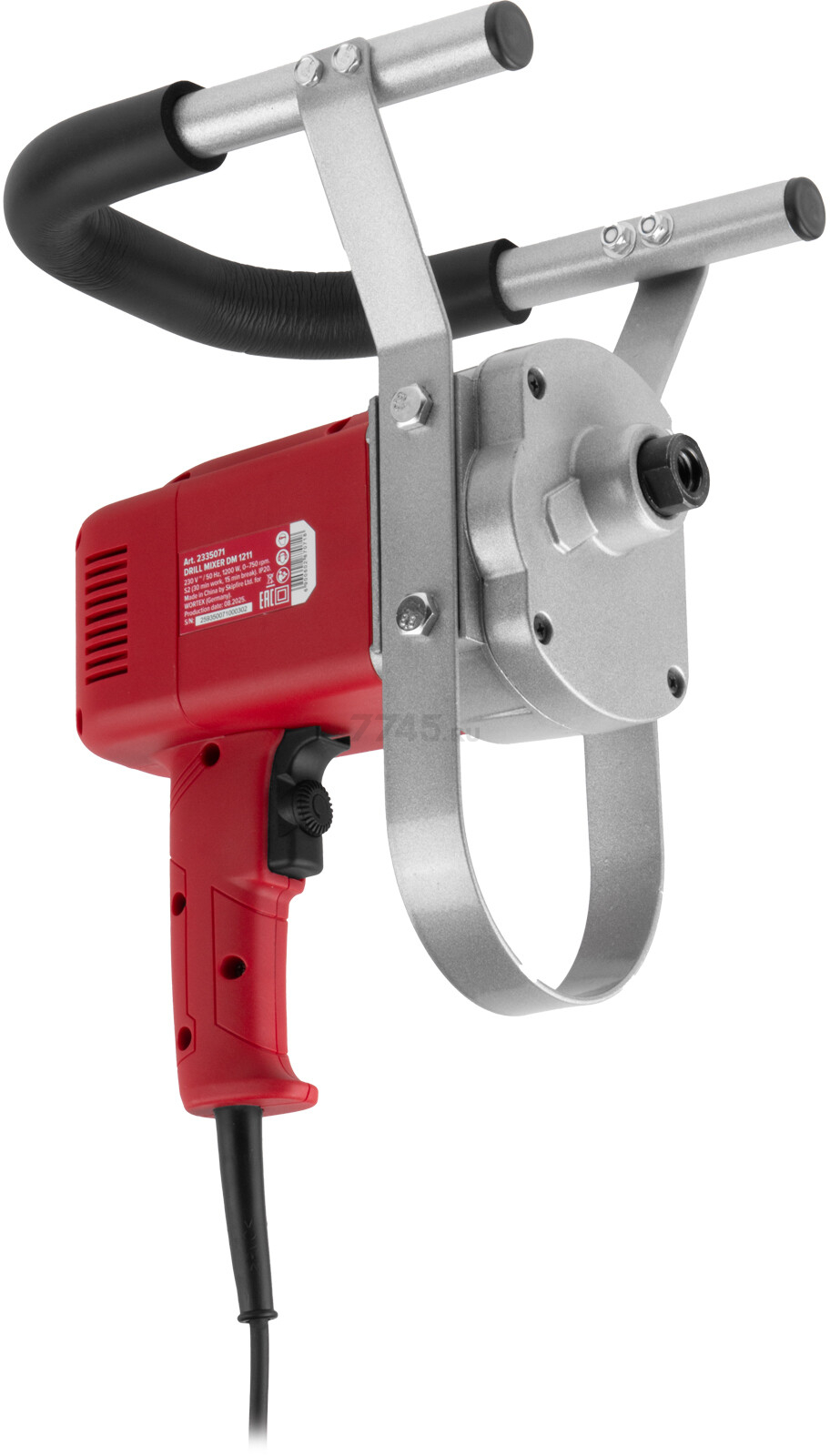 Инструмент оснащен широкой скобовидной рукояткой , хорошо знакомой на рынках СНГ. Управление осуществляется с помощью выключателя со ступенчатым регулятором оборотов и кнопкой фиксации для непрерывной работы. Регулировка скорости позволяет начать смешивание на низких оборотах и избежать разбрызгивания смеси.