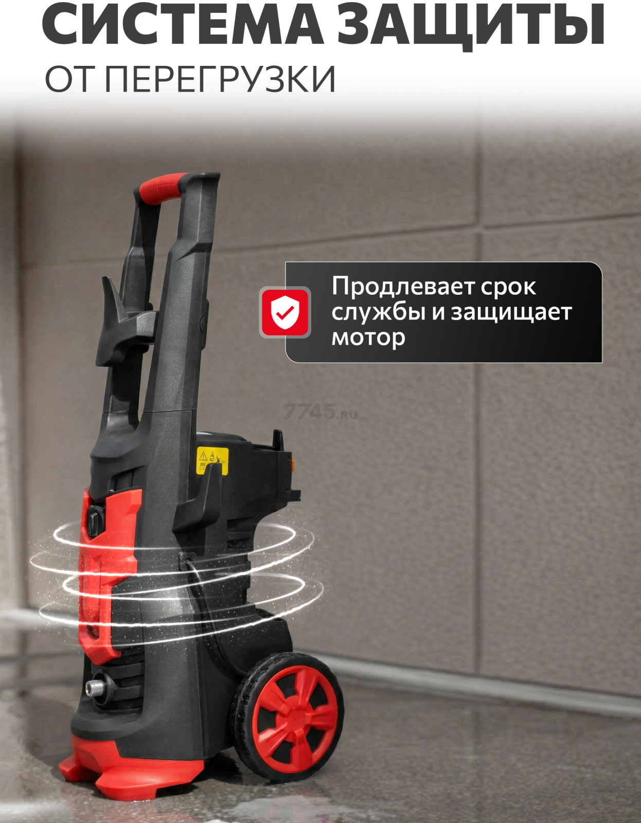 Очиститель оснащен системой защиты двигателя от перегрузок, что повышает его надежность и продлевает срок службы.
