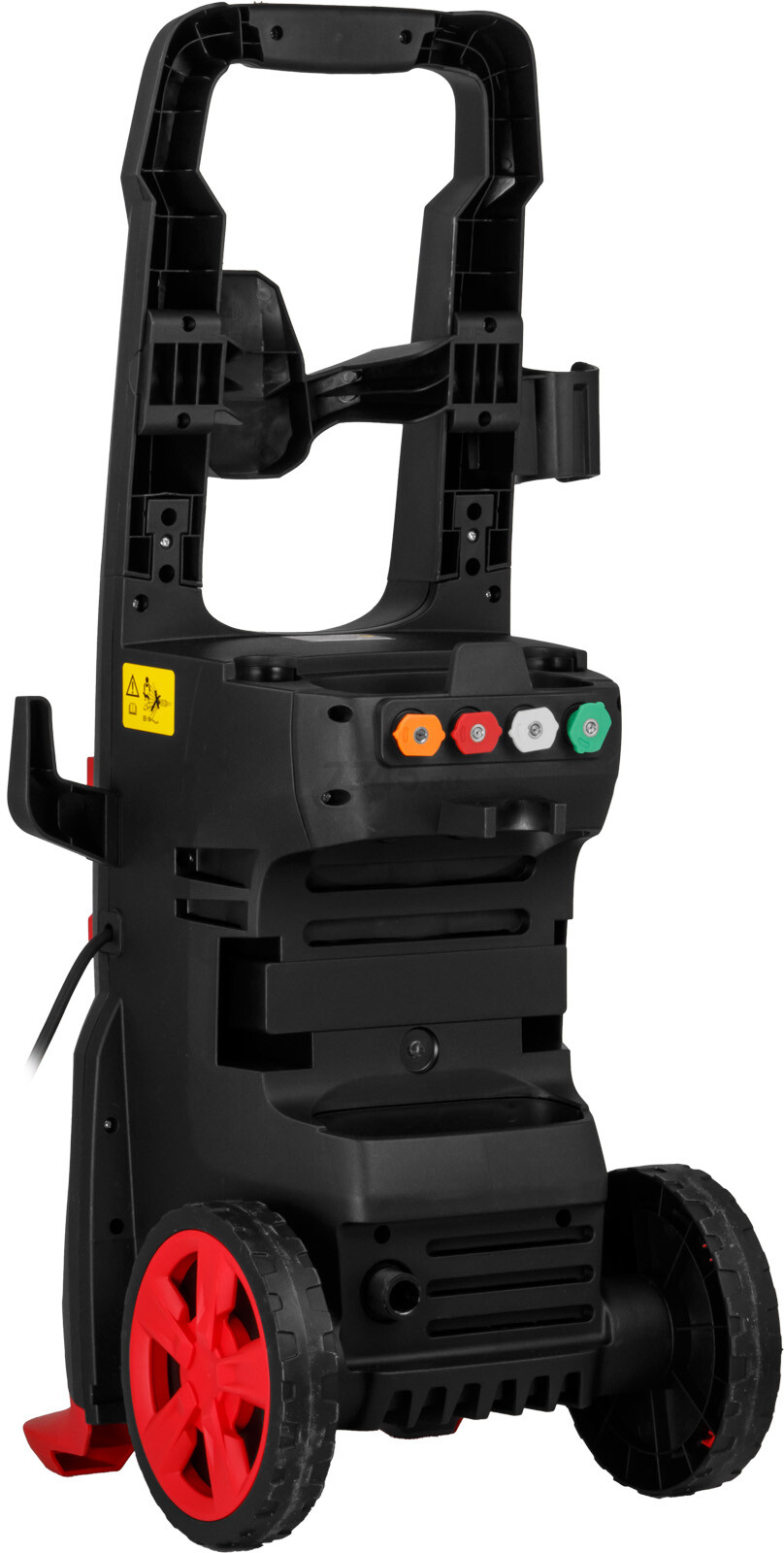 Благодаря высокой производительности аппарат быстро удаляет стойкие загрязнения, слои грязи, плесень и мох. Конструкция устройства компактна и продумана для удобства транспортировки и хранения, за счет колес и навесных элементов для аксессуаров (пистолет, форсунки, шланг, сетевой шнур) делает работу с мойкой максимально комфортной.