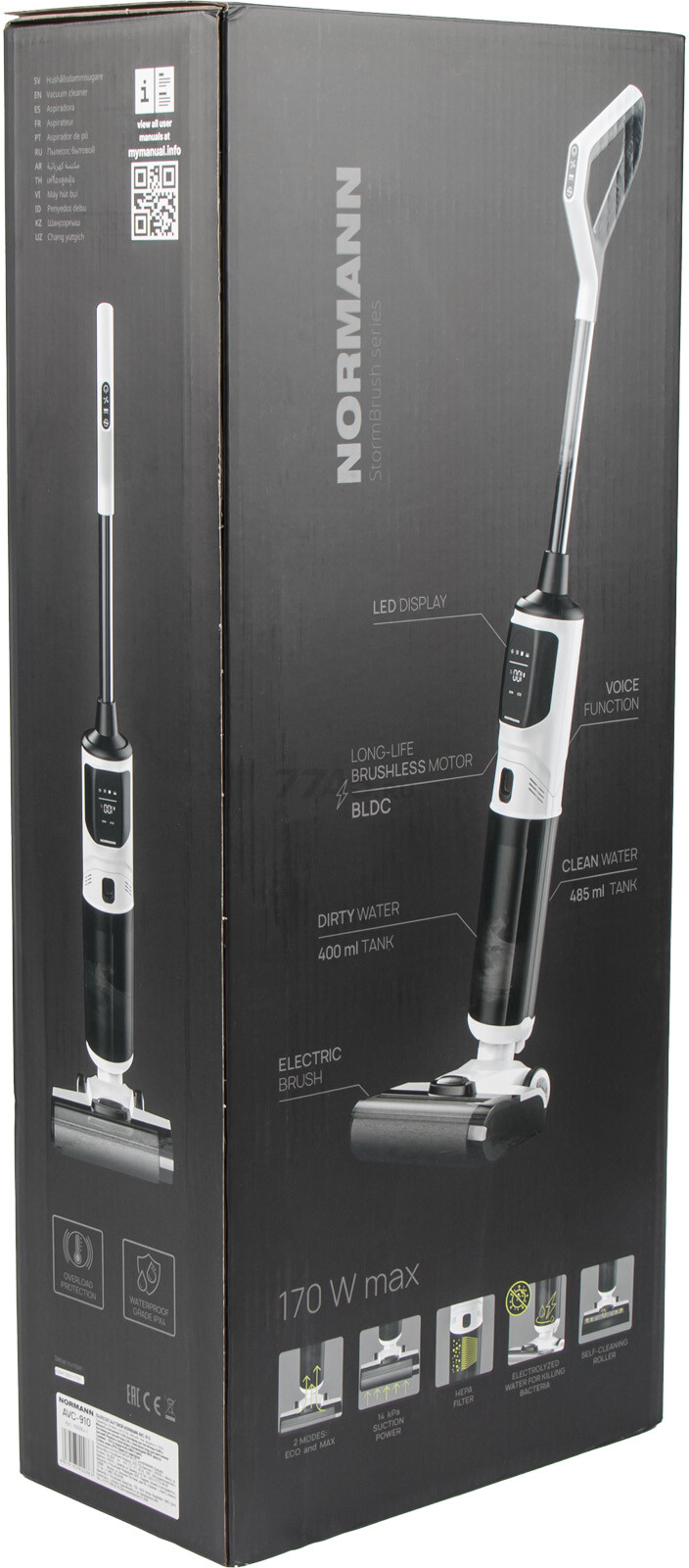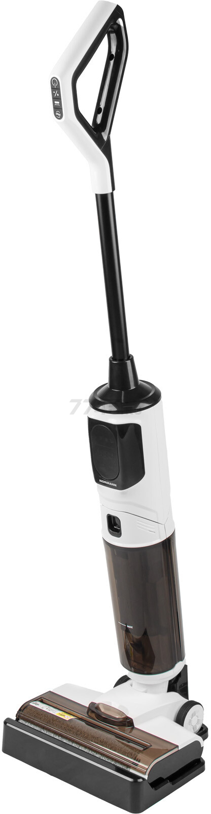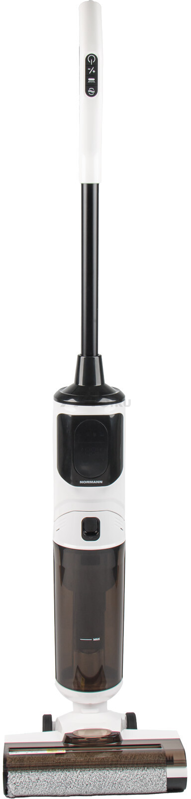 Пылесос NORMANN AVC-910 (N16064-1) — вертикальный беспроводной пылесос для дома, совмещающий сухую и влажную уборку, обеспечивая эффективный уход за различными поверхностями. Модель оснащена двумя резервуарами для чистой и грязной воды, функцией самоочистки турбощетки и электролизом воды для уничтожения бактерий. Два режима работы — стандартный (ECO) и турбо (MAX) — позволяют адаптировать мощность всасывания под уровень загрязнений.