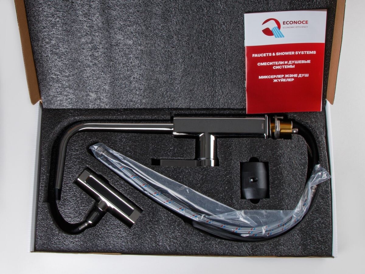 Смеситель для кухни ECONOCE серия 820 (EC0823) – надежное и практичное решение для современной кухни. Корпус из нержавеющей стали (SUS 201) с гальваническим покрытием обеспечивает долговечность и устойчивость к коррозии, а выдвижной и поворотный излив позволяет легко направлять поток воды в нужное место.